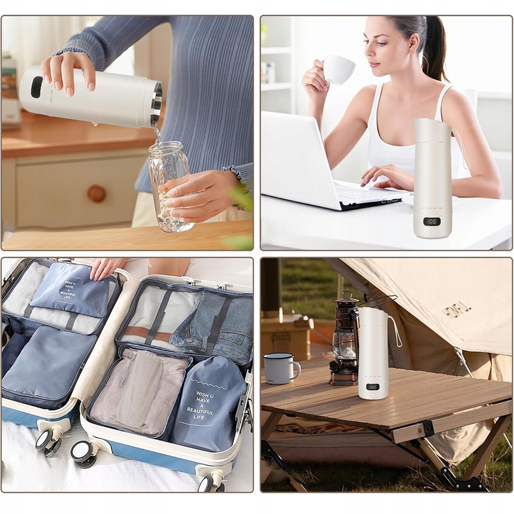 Сочетает в себе функции чайника, термоса и чашки для питья. Плотная застежка позволяет легко упаковать его в рюкзак, что делает его пригодным для путешествий, дома, гостиницы, деловой поездки и других целей, позволяя наслаждаться горячими напитками в любое время и в любом месте.