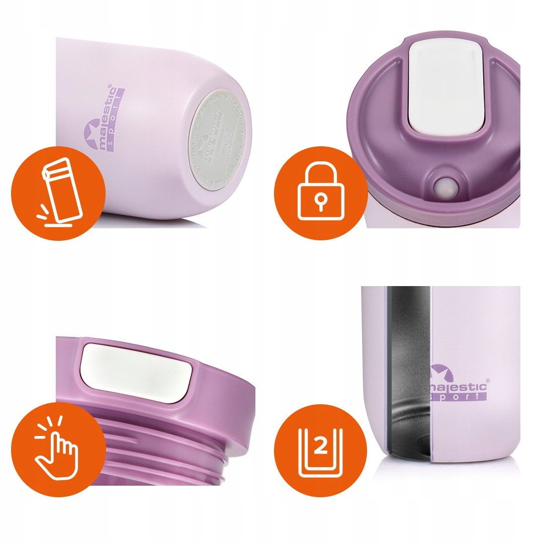 · Majestic Sport Thermal Mug - это простой, надежный дизайн . Отсутствие свободных элементов крышки и широкая нить дает легкий доступ ко всем уголкам и кранам и позволяет тщательно промывать интерьер. Чтобы увеличить функциональность, чашка оснащена системой открытия один щелчок , которую вы будете использовать одной рукой. Кроме того, Majestic Sport Bullet имеет не -скользящую ногу , а мягкий край тела позволяет вам пить прямо из чашки