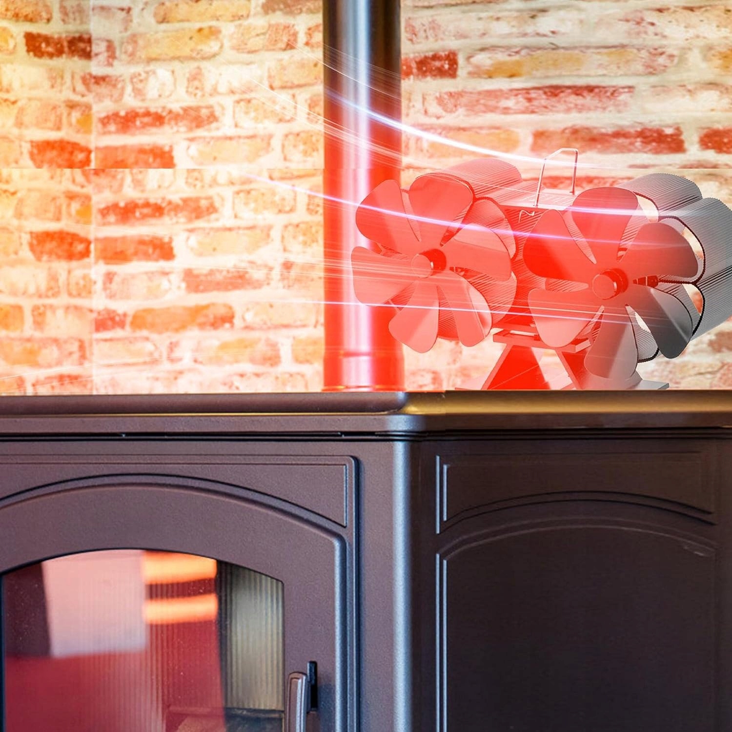 - Тепло вентилятора камина подается от дровяной печи, преобразуя поглощенную тепловую энергию в кинетическую энергию. Когда температура достигает 212°F, вентилятор дровяной печи вращается, распределяя теплый воздух по горизонтали.
