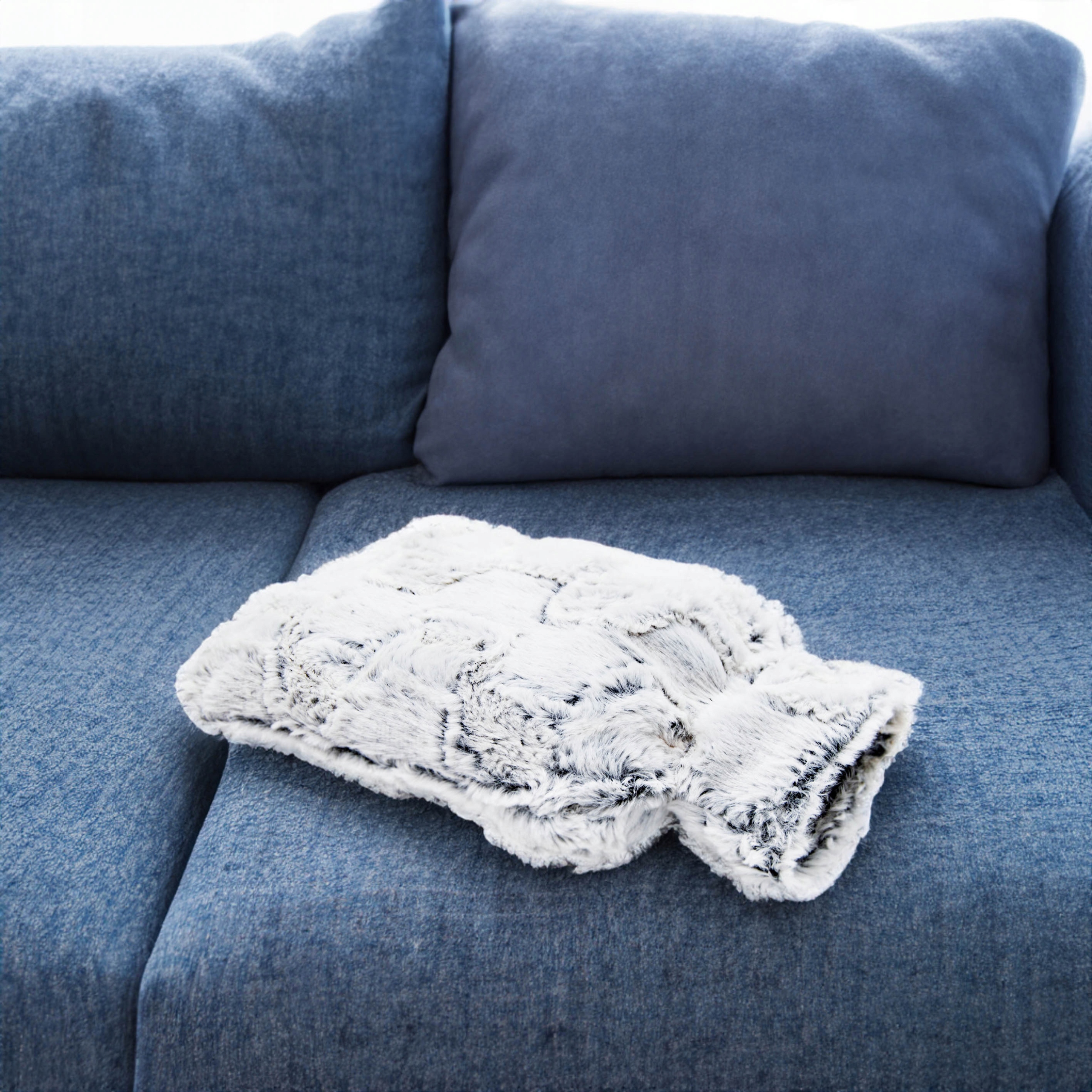 - грелка графитового и белого цвета, плюшевый мех с широкими зубцами.