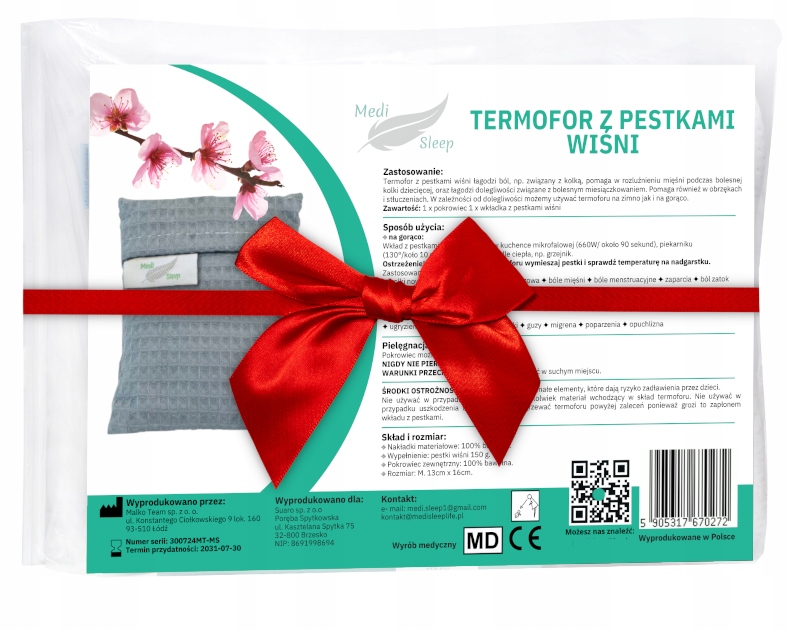 Грелка с вишнёвыми косточками 13/16 см для детей и взрослых от болей, колик, лихорадки, ушибов, ожогов, менструальных болей. Польский продукт, медицинский прибор, сертификат OEKO-TEX®.