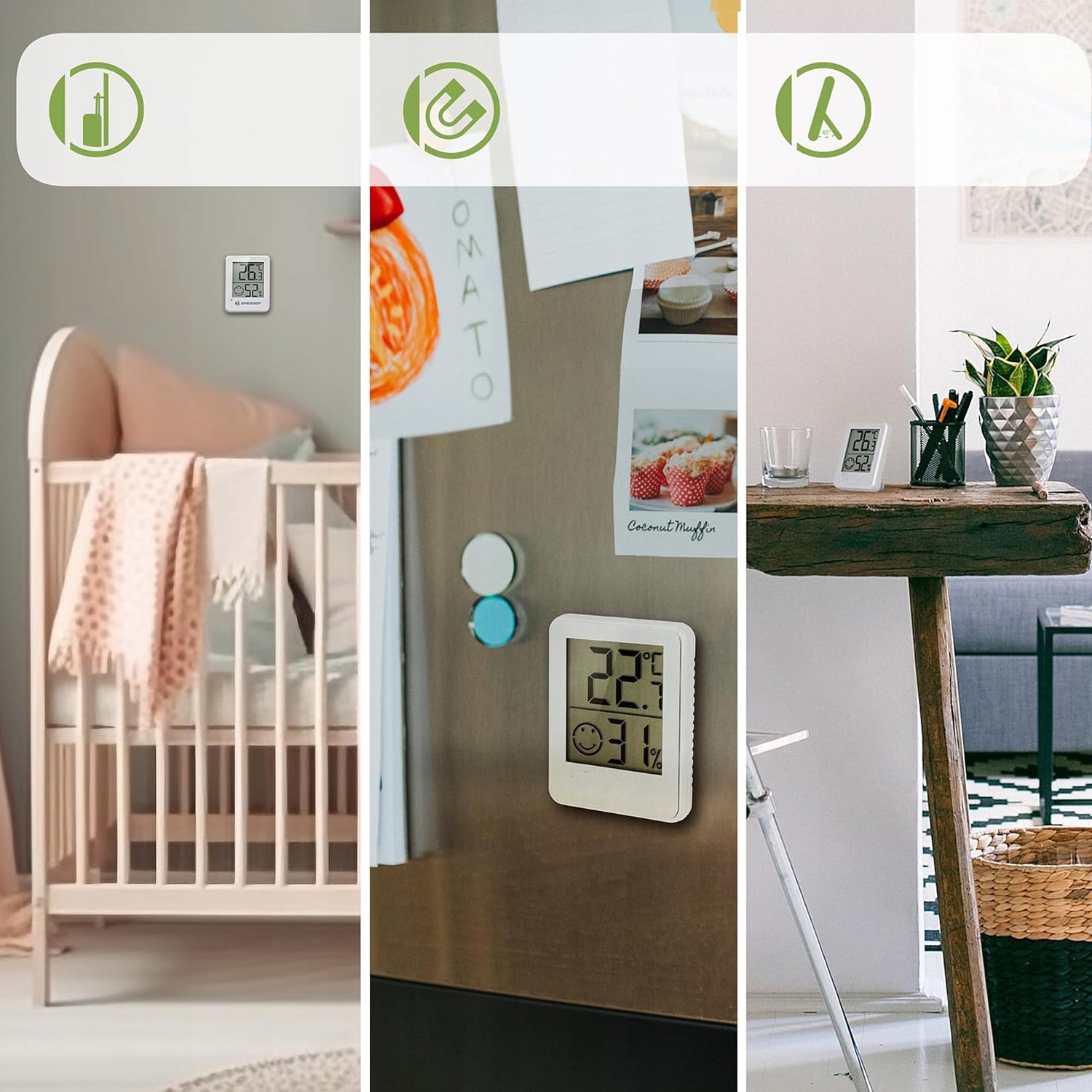 - С помощью цифрового мини-термометра влажности вы можете контролировать температуру и влажность с помощью четкого дисплея, и теперь вы может контролировать климат в помещениях, где вы проводите больше всего времени, например в спальнях.