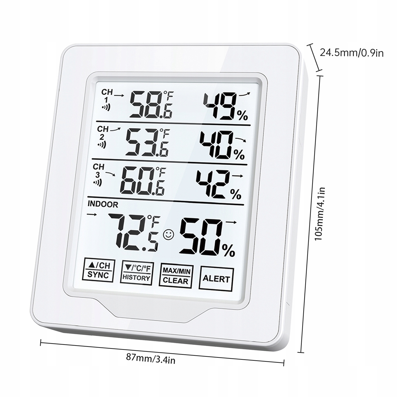 Многофункциональность: этот термометр температуры предоставляет наиболее достоверную информацию, такую ​​как влажность и температура. Кроме того, он поддерживает оповещение о температуре, запись макс/мин. и стрелки тренда, их легко использовать и проверять.