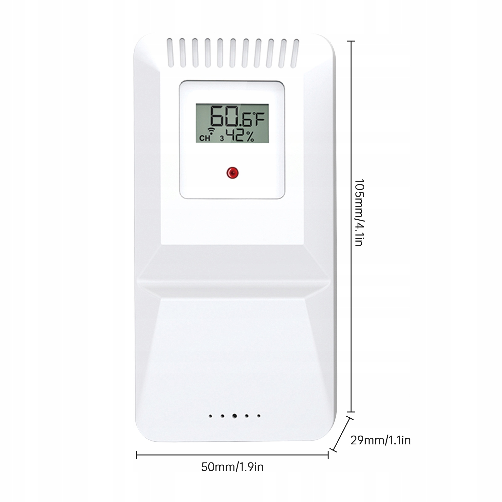 5. Подставка и подвеска: цифровой приемник термометра со скрытой подставкой и отверстием для подвешивания, подходит для подвешивания на столе, столешнице, стене и двери. Нижний предел установки. Технические характеристики: