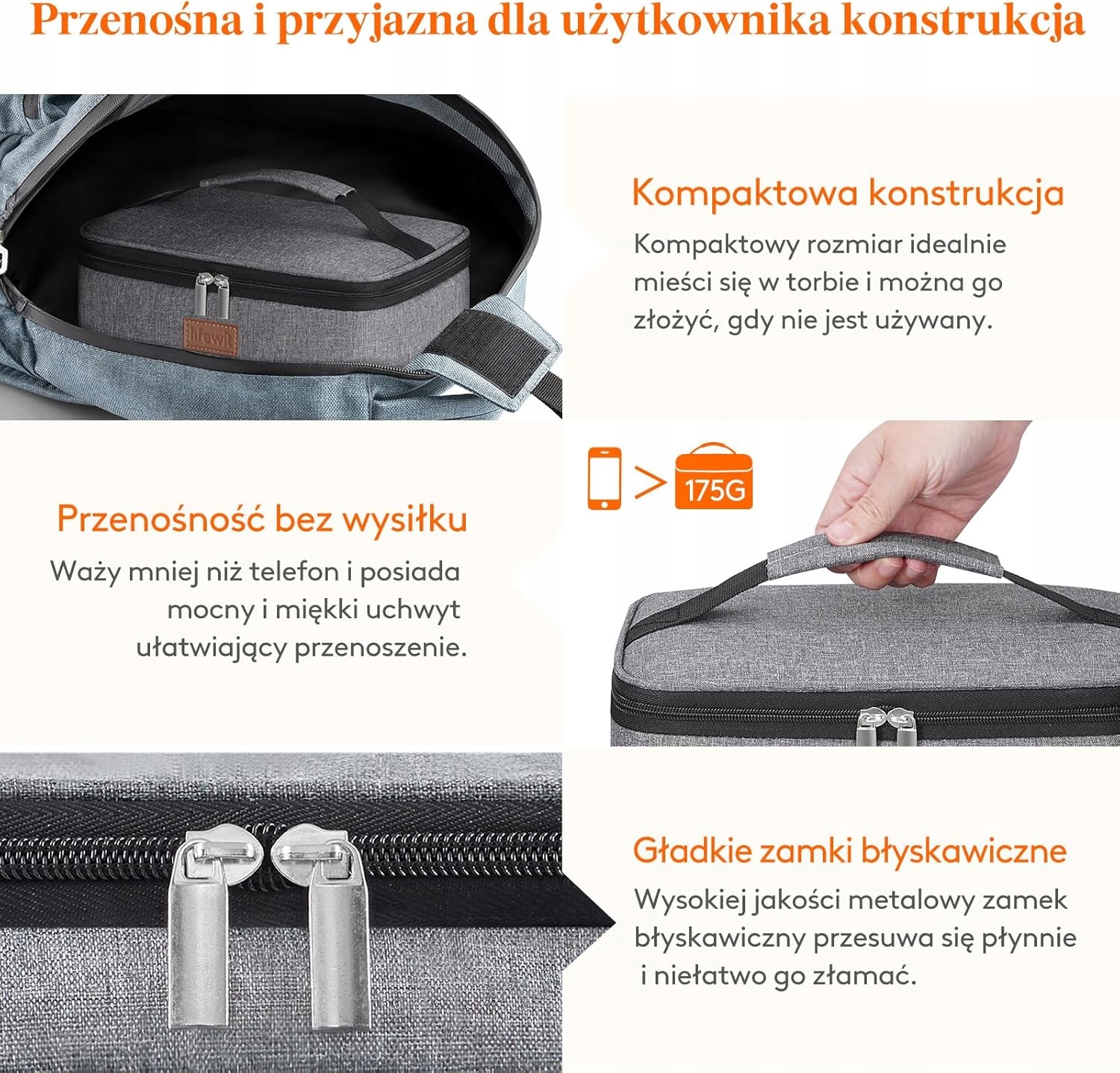 Он весит всего 175 г — меньше, чем ваш телефон! Прочная ручка обеспечивает удобную переноску, а компактный размер помещается в рюкзак или сумочку. Его можно легко сложить и хранить.