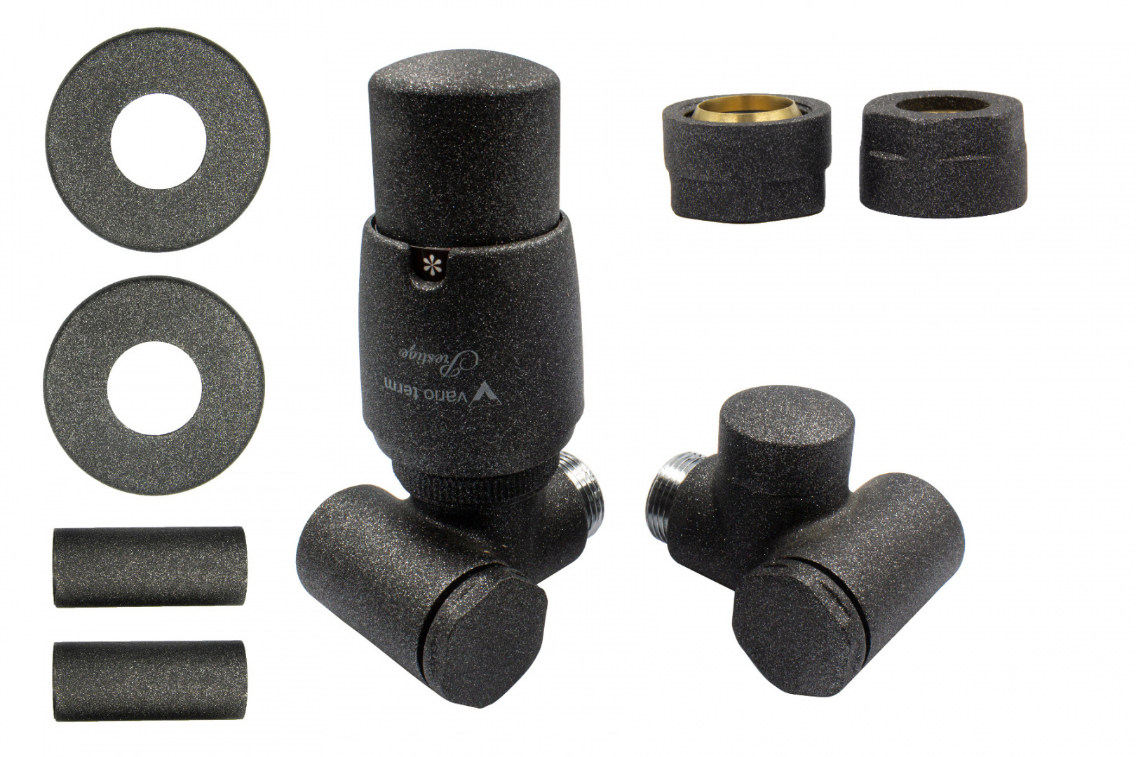 Клапан термостатический для обогревателя INTEGRA, темный структурный графит, левый Cu All in One