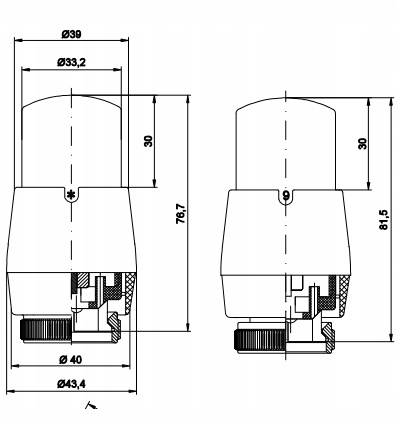 Ниже приведены чертежи с размерами термостатического и запорного клапана Integra и размерами головки.