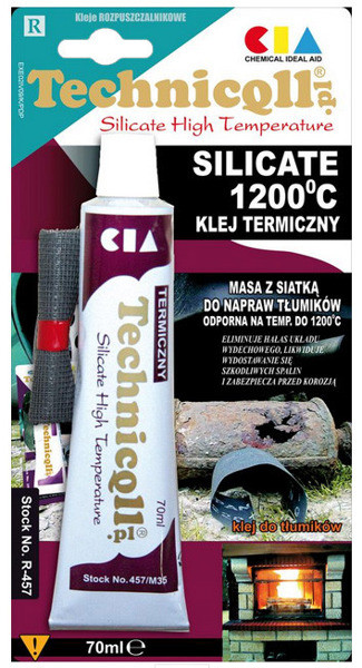 Это огнестойкий клей на основе силикатов. Он идеально подходит для всех материалов, работающих при очень высоких температурах, даже выше тысячи градусов Цельсия. Клей устойчив к выхлопным газам, разбавленным кислотам, воде, химикатам и отрицательным температурам.