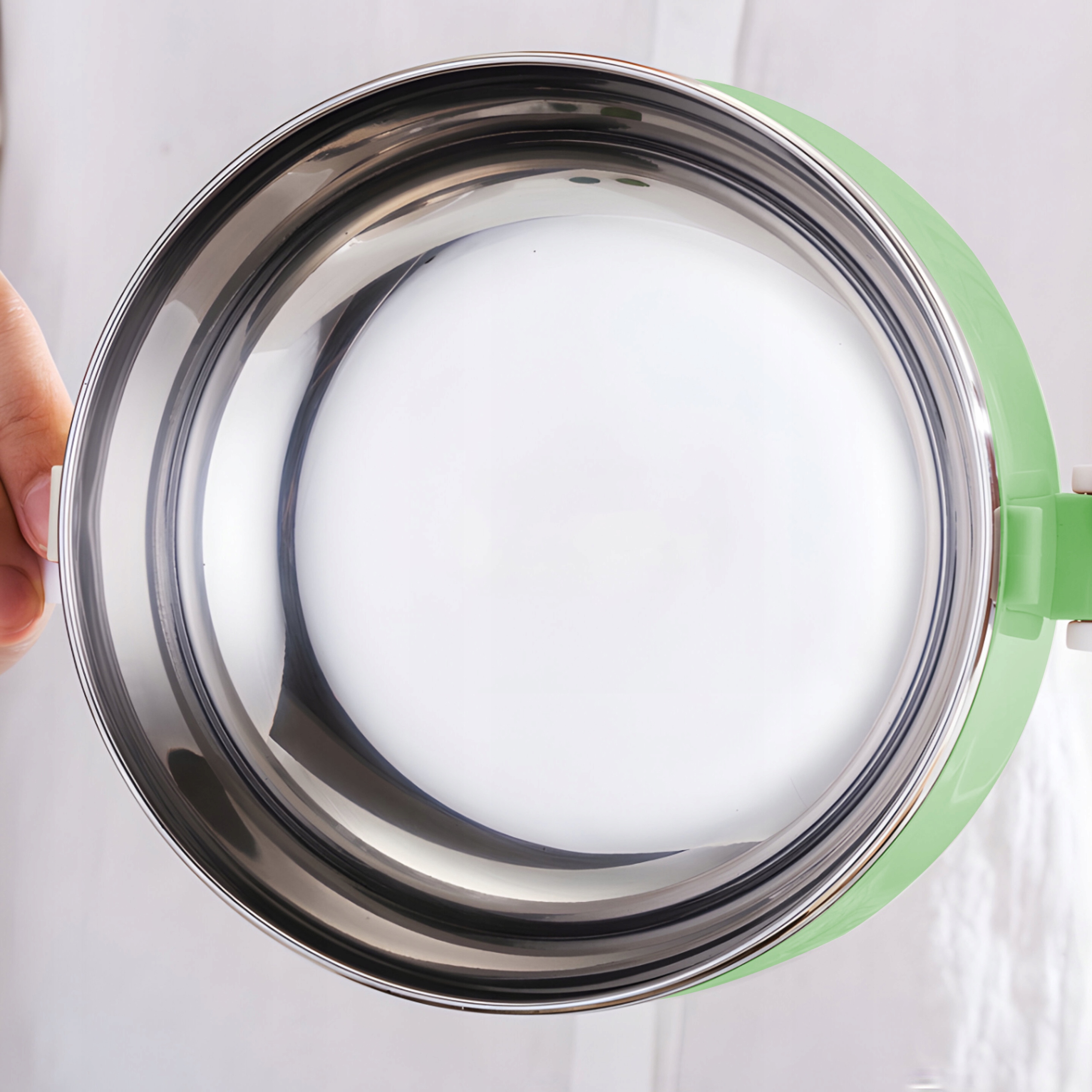 Ланчбоксы изготовлены из прочной нержавеющей стали, термостойкой и прочной. Каждый из них покрыт полипропиленовой крышкой, которая защищает от протечек и сохраняет свежесть и вкус продуктов. Это контейнер для завтрака, который легко содержать в чистоте, что делает хранение продуктов гигиеничным и удобным.