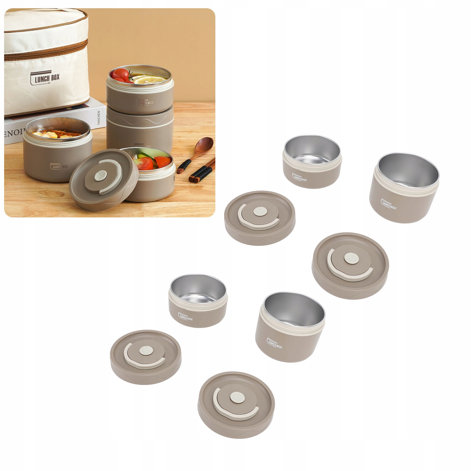 Изолированный ланч-бокс из нержавеющей стали 304, герметичный многофункциональный портативный круглый термоконтейнер для бенто с сумкой-холодильником