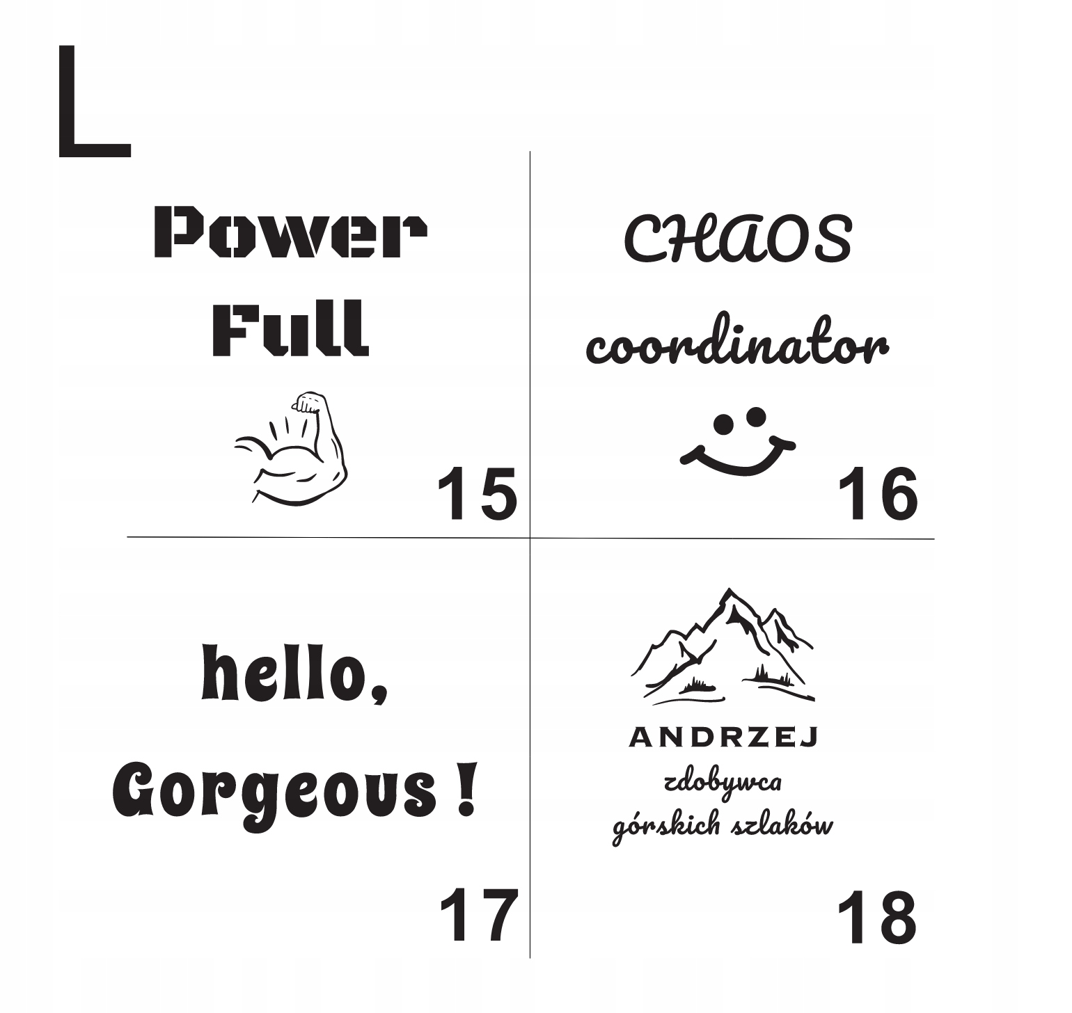 Также можно отправить свой собственный дизайн для его гравировки, но тогда, пожалуйста, обратите внимание на нижнюю и верхнюю части. регистровые буквы и знаки препинания, так как мы не несем ответственности за ошибки в представленном тексте.