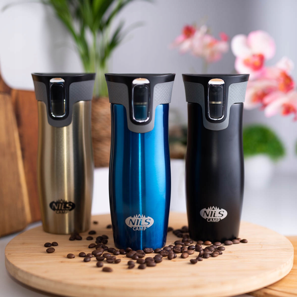 NCC03 — термокружка, изготовленная из нержавеющей стали b> с двойной стенкой, что гарантирует сохранение температуры теплых напитков в течение 12 часов и холодных напитков в течение 24 часов. Термокружка NCC03 имеет инновационную систему открывания. Чтобы выпить, нажмите и удерживайте кнопку – тогда блокировка открытия разблокируется. Однако, чтобы заблокировать открытие, просто отпустите кнопку. Еще одним большим преимуществом является то, что нижняя часть кружки имеет противоскользящую резину, что повышает безопасность от проливания горячего кофе или чая, когда кружка открыта!