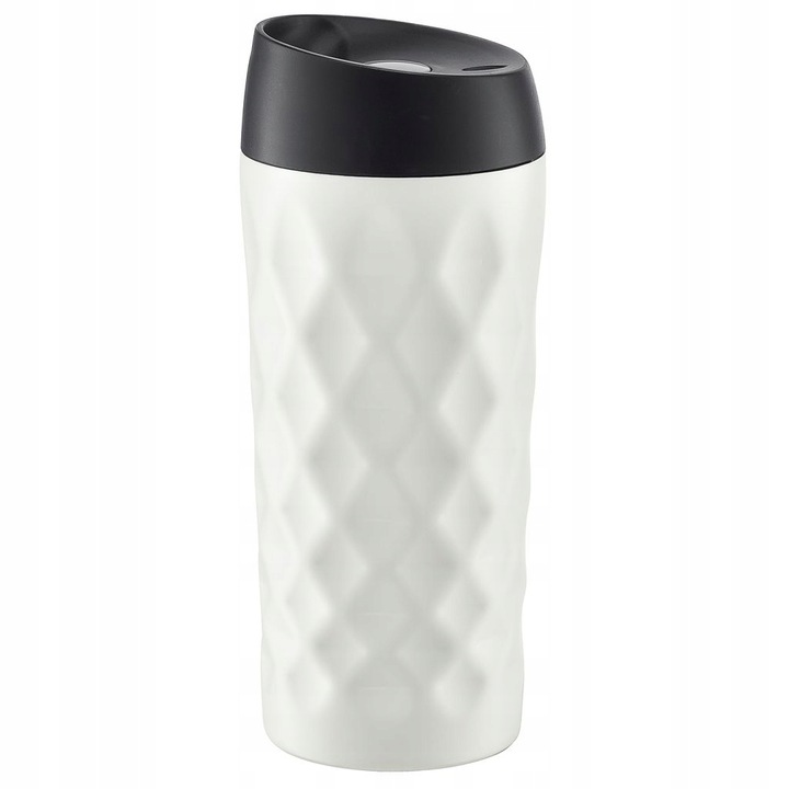 Элегантная термокружка с уникальным ромбическим тиснением - стильно, практично и надежно. Благодаря двойным стенкам из нержавеющей стали он долго сохраняет температуру напитка, а герметичная система «клик-клак» предотвращает протекание. Идеально подходит для работы, автомобиля и повседневных путешествий.