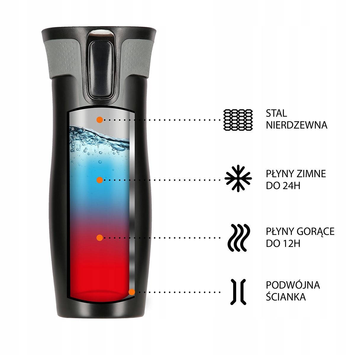 ✔️ б> NCC03 — термокружка, изготовленная из нержавеющей стали с двойными стенками, что гарантирует сохранение температуры горячих напитков в течение 12 часов и холодных в течение 24 часов.