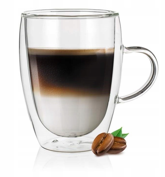 Кружка стеклянная с ручкой, двухкамерная, двойные стенки.