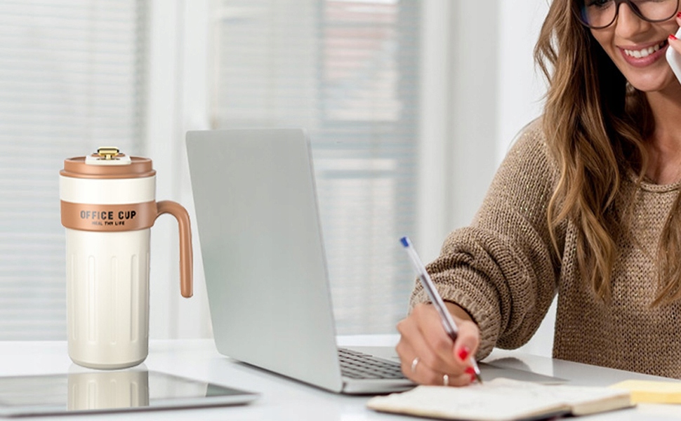 Термокружка имеет встроенную ручку, что делает ее идеальной для того, чтобы брать ее с собой в дорогу и наслаждаться любимым напитком в любое время и в любом месте.