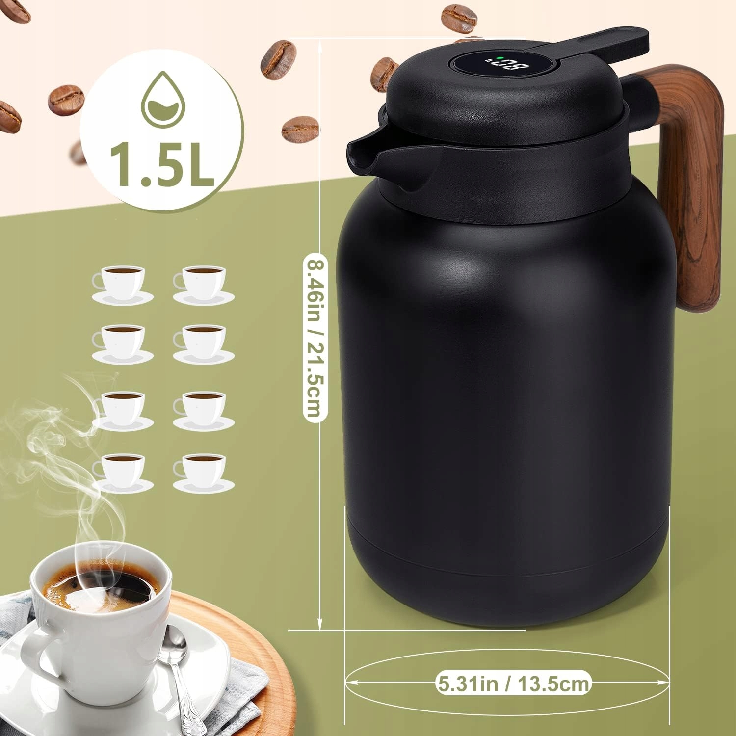- 📺 Цифровой дисплей температуры на крышке - безопасное наливание и предотвращение ожогов