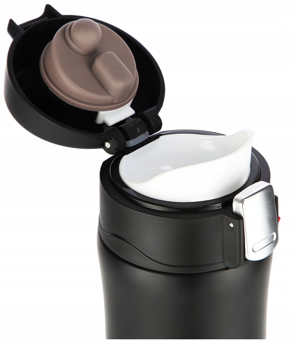 - Чтобы разблокировать замок и открыть крышку, просто сдвиньте кнопку безопасности вверх, затем нажмите кнопку открытия, и все, чашка откроется автоматически. !