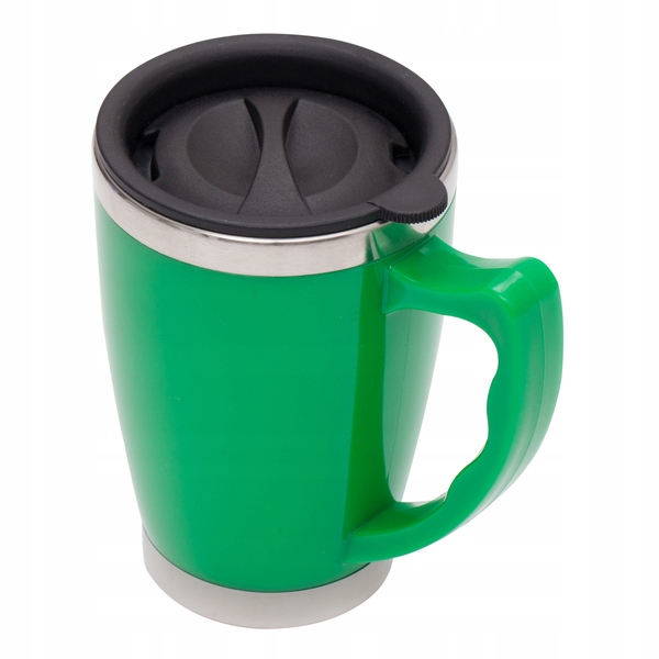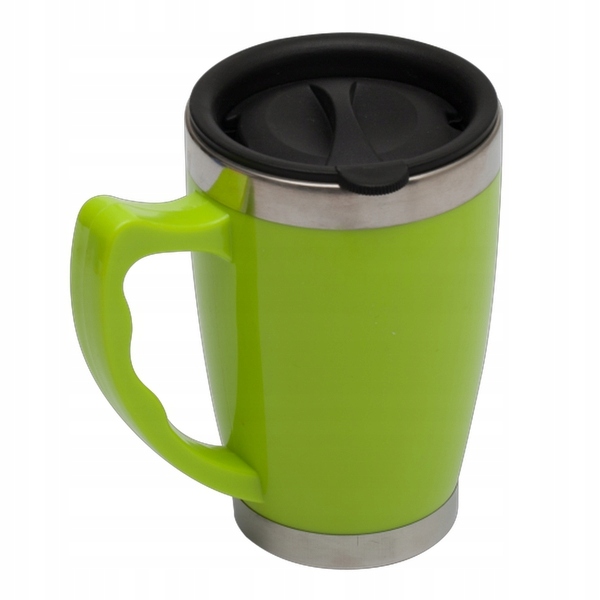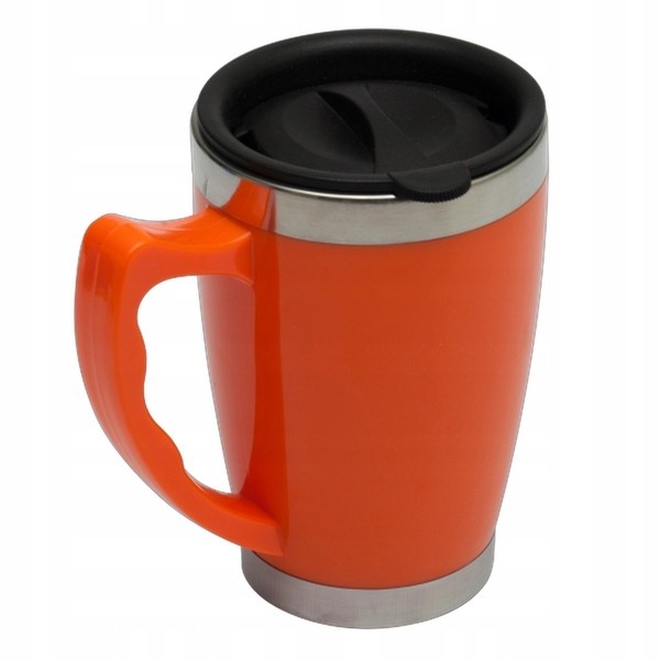 Кружка изотермическая из нержавеющей стали и пластика, с крышкой. Емкость 380 мл. Внутри чашки качественная сталь 18/8.