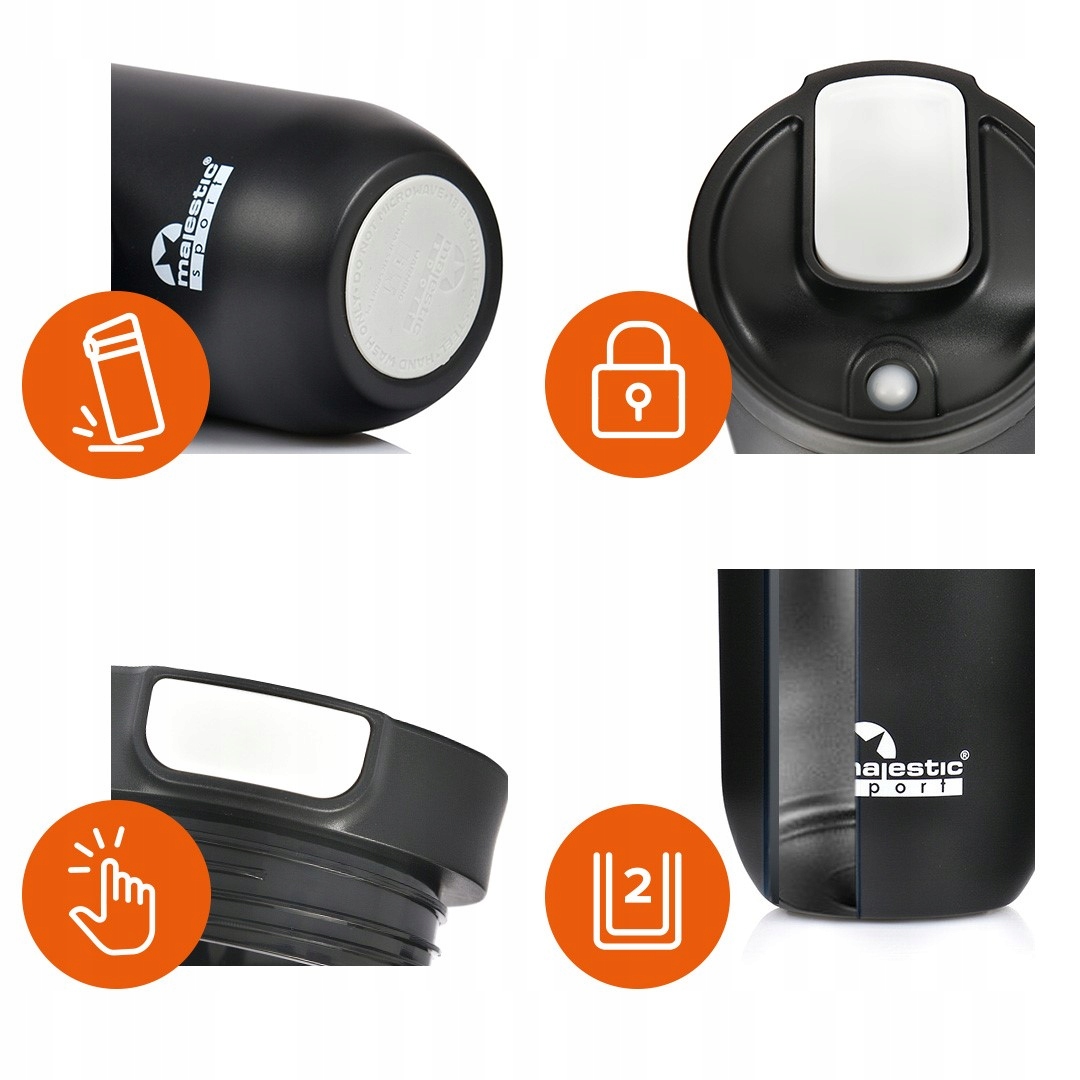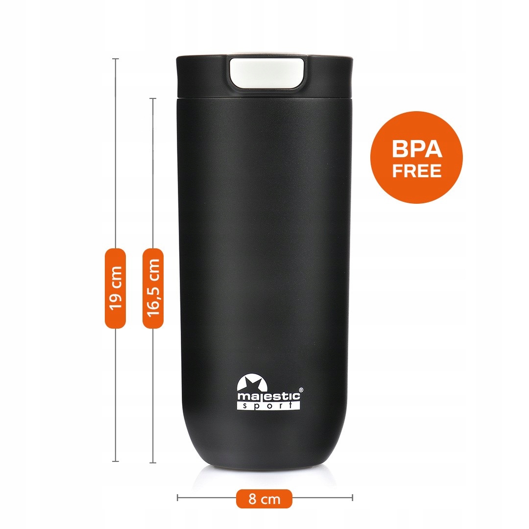 ❗ Majestic Sport Bullet – настоящий чемпион повседневного использования. Емкость 540 мл, изолированные стальные стенки и термоворотник позволяют сохранять тепло до 6 часов. Система одним щелчком позволяет удобно открывать одной рукой, а форма, подходящая для большинства автомобильных держателей, делает кружку подходящей как для работы, так и для путешествий