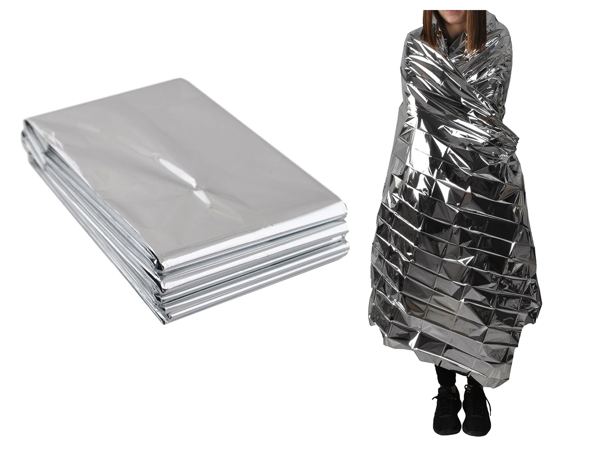 Спасательное термоодеяло из высококачественной серебряной фольги, используемое в спасательных операциях, туризме, альпинизме, чрезвычайных ситуациях или экстремальных условиях.