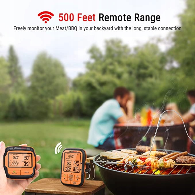 Оснащен двумя щупами пищевого класса , термометр ThermoPro TP-28 может контролировать температуру в течение более длительного периода времени, что делает его идеальным для копчения, гриля или запекания. Созданный с использованием беспроводной радиочастотной технологии нового поколения, термометр TP-28 имеет дальность действия до 150 метров, поэтому вы можете без проблем использовать его дома или во дворе.