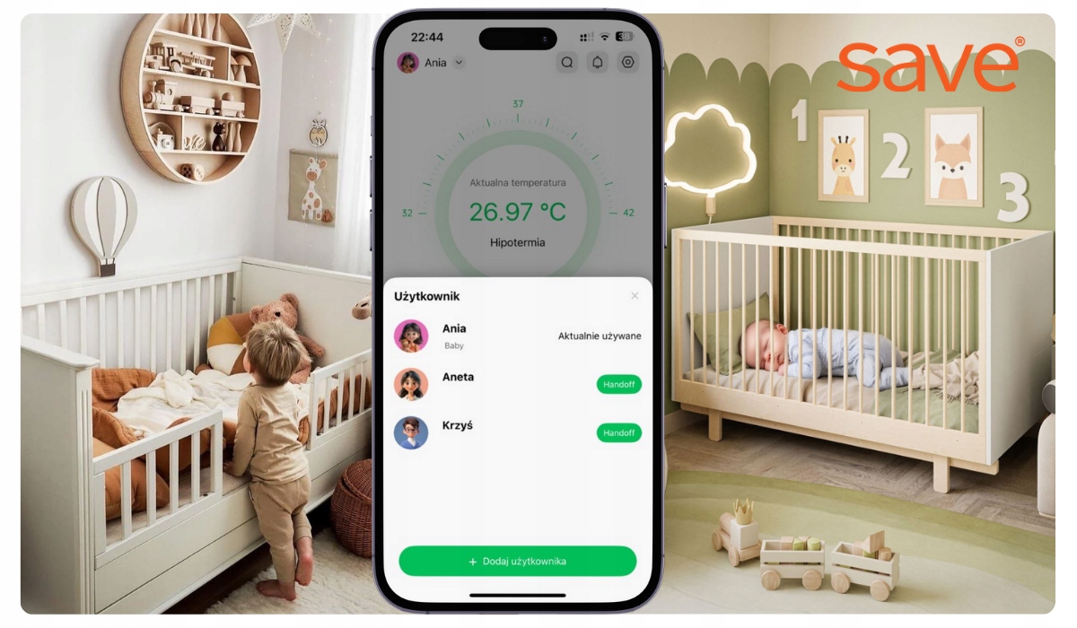 Когда у ребенка температура начнет повышаться и превысит безопасный уровень, приложение немедленно отправит сигнал тревоги на ваш телефон. Благодаря этому вы сможете быстро отреагировать, даже если вы спите или находитесь в другой комнате. Это дополнительное чувство безопасности и спокойствия – вы контролируете здоровье ребенка 24/7, без необходимости постоянно его проверять.