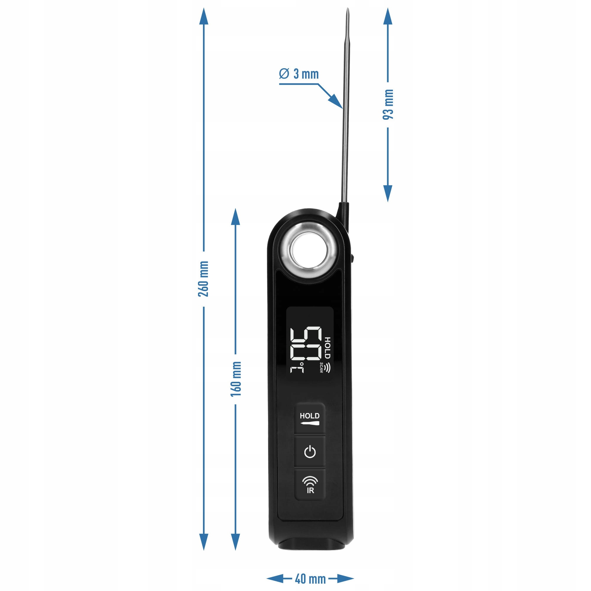 Познакомьтесь с инструментом, который сделает приготовление пищи более комфортным и точным — компактным кухонным термометром со складным зондом и возможностью инфракрасного измерения. Этот современный и практичный термометр позволяет быстро и удобно измерять температуру блюд, становясь незаменимым элементом вашей кухни. Идеально подходит для всех, кто ценит точность и удобство при приготовлении пищи.