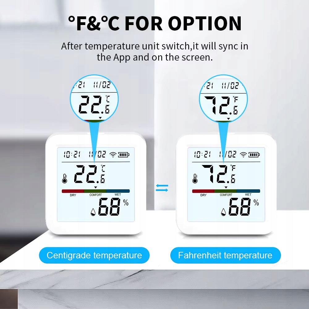 Датчик температуры и влажности может быть подвешен и размещать в любом месте, не занимая пространство b>, на прикроватных столах, столах, офисах, на стенах или за дверью.