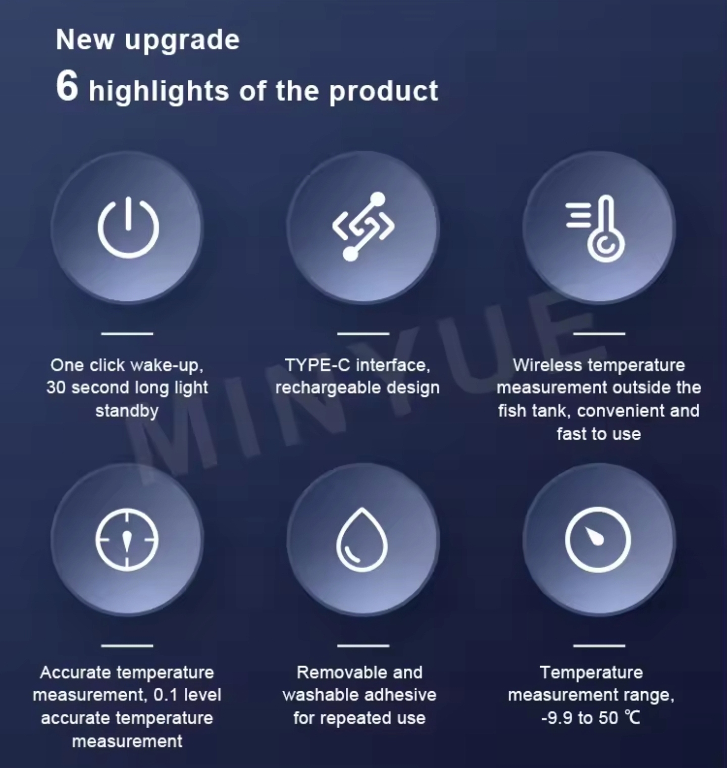 Подробный дисплей: аквариумный термометр имеет диапазон измерения от -9,9 до 50 ℃. Измерение температуры в аквариуме обновляется каждые 5 секунд. Нажмите на значок экрана, чтобы отобразить температуру воды до 30 секунд температурного дисплея. Дисплей разборчив независимо от того, является ли это днем или ночью.