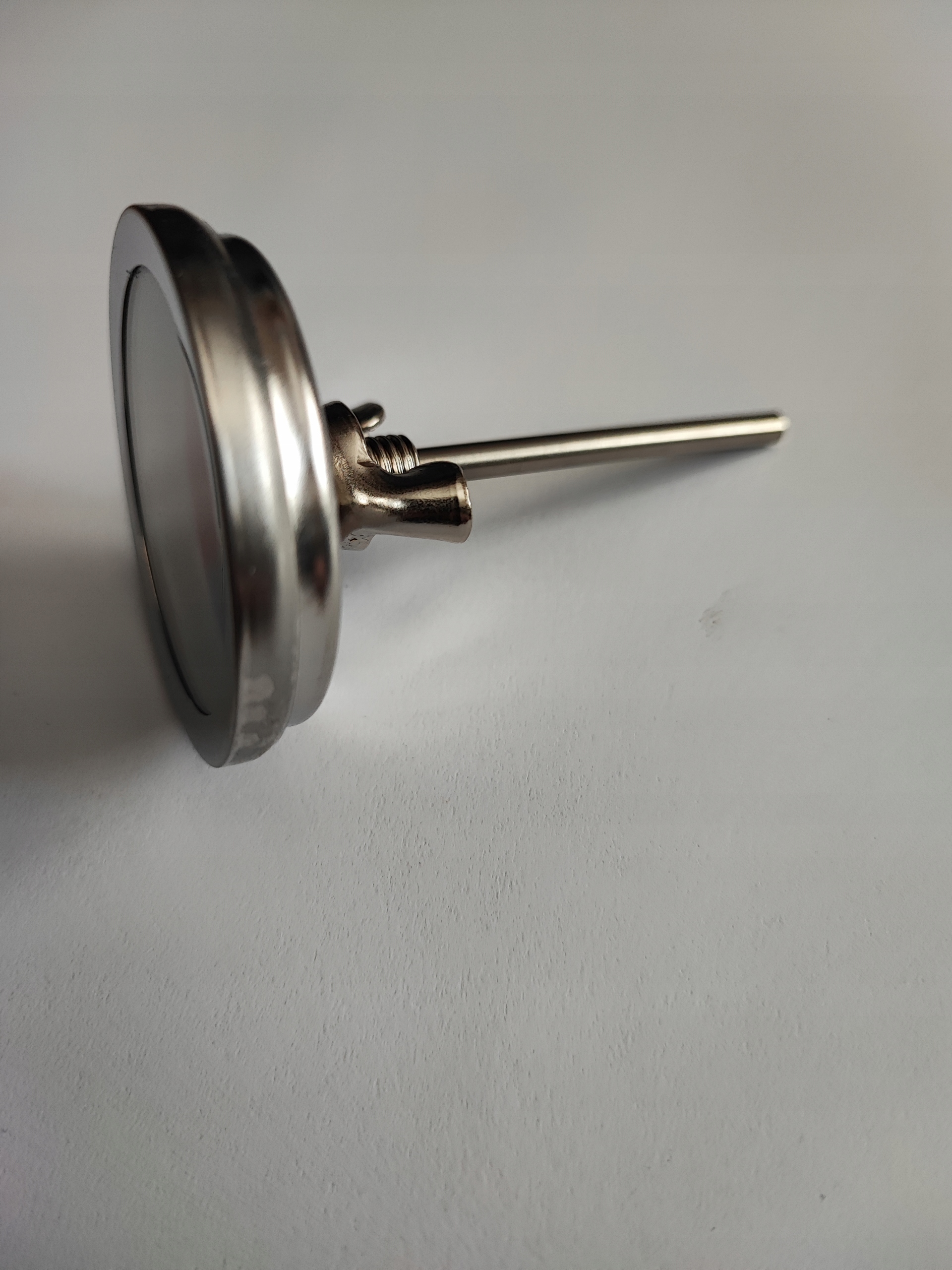 Термометр из нержавеющей стали, полностью изготовленный из нержавеющей стали, идеально подходит для измерения температуры в гриле или коптильне.