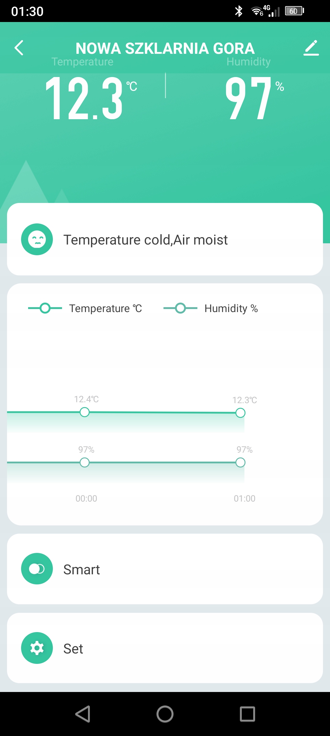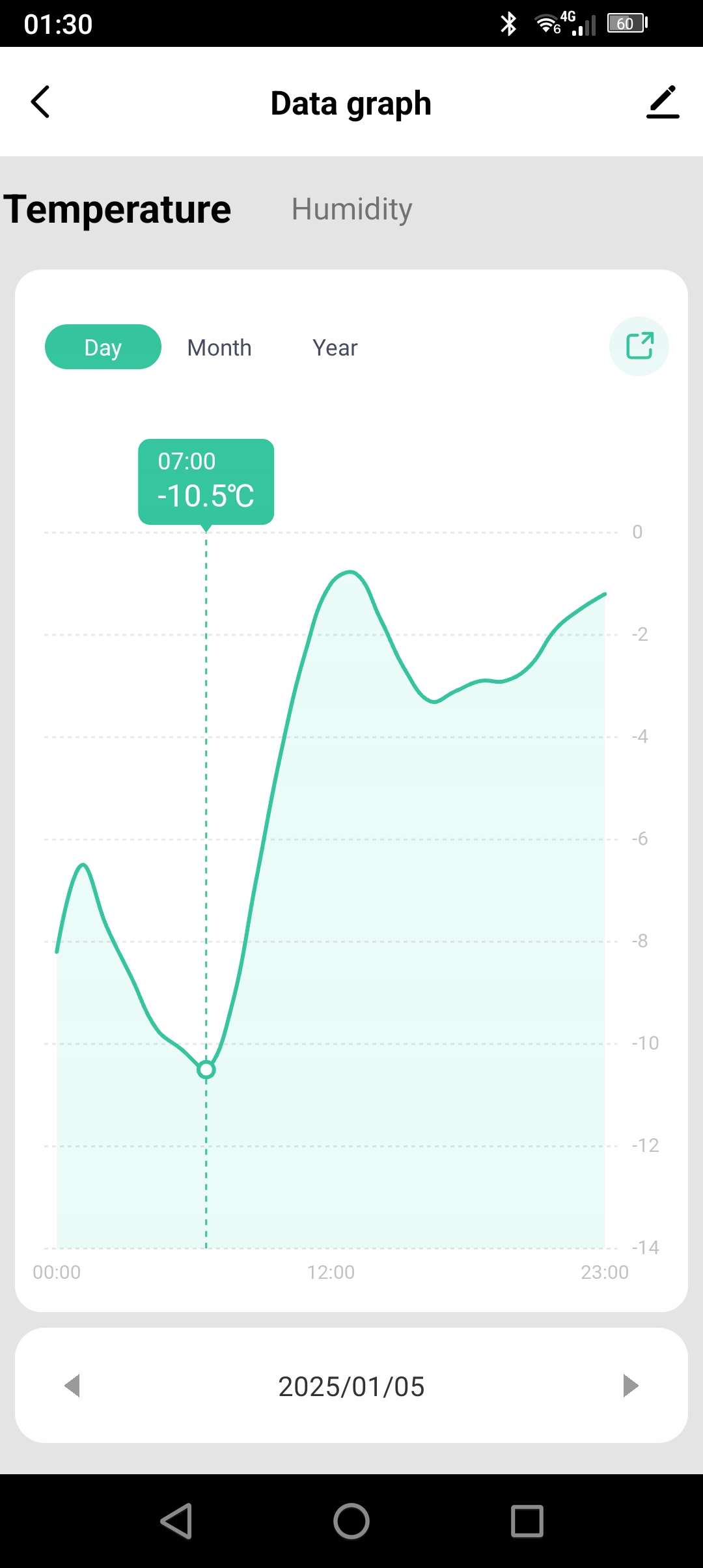 - Измерение температуры обновляется каждую минуту и сохраняется на график каждый час