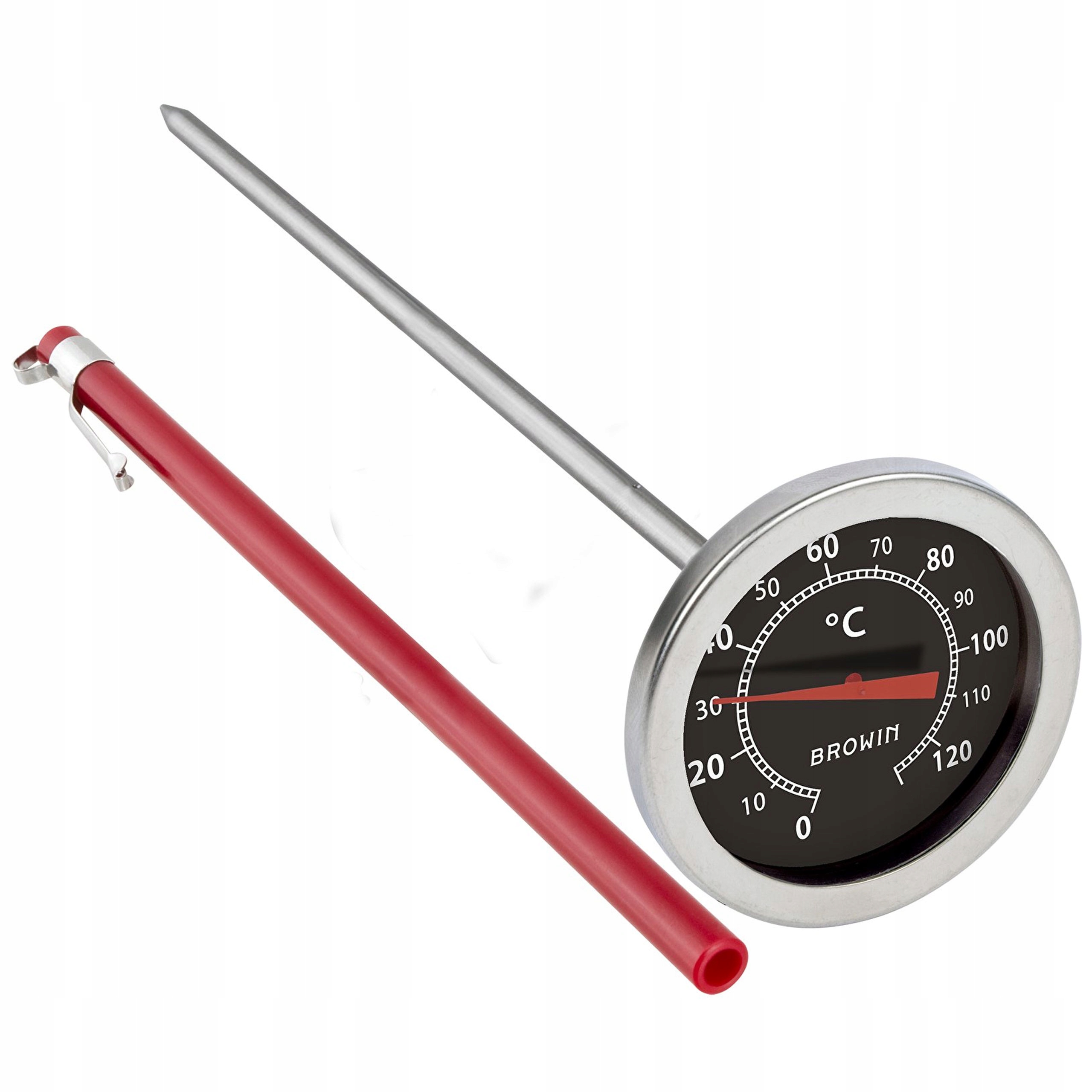 Прочный, прочный гастрономический термометр из высококачественной нержавеющей стали. Идеально подходит для контроля температуры в процессе копчения и гриля. Устройство оснащено длинной шпажкой размером 20,5 см и диаметром 0,4 см.