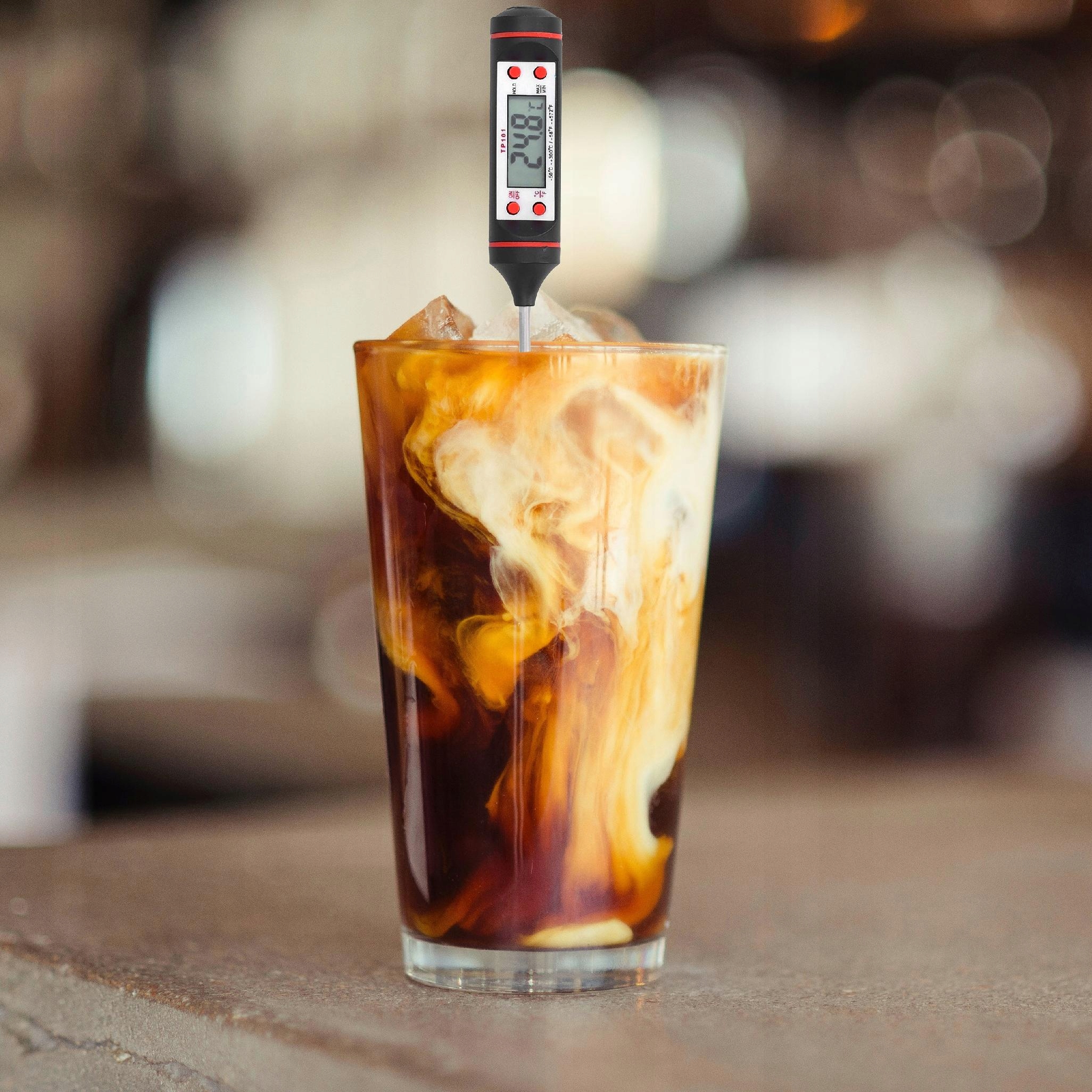 Термометр оснащен шампуром, что позволяет быстро погружать его в пищу и считывать результат на четком ЖК-дисплее. Благодаря этому инструменту каждый повар сможет легко отслеживать и контролировать температуру, необходимую для сохранения качества и вкуса приготовленных блюд.