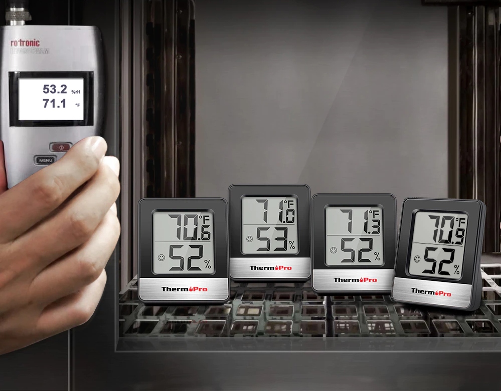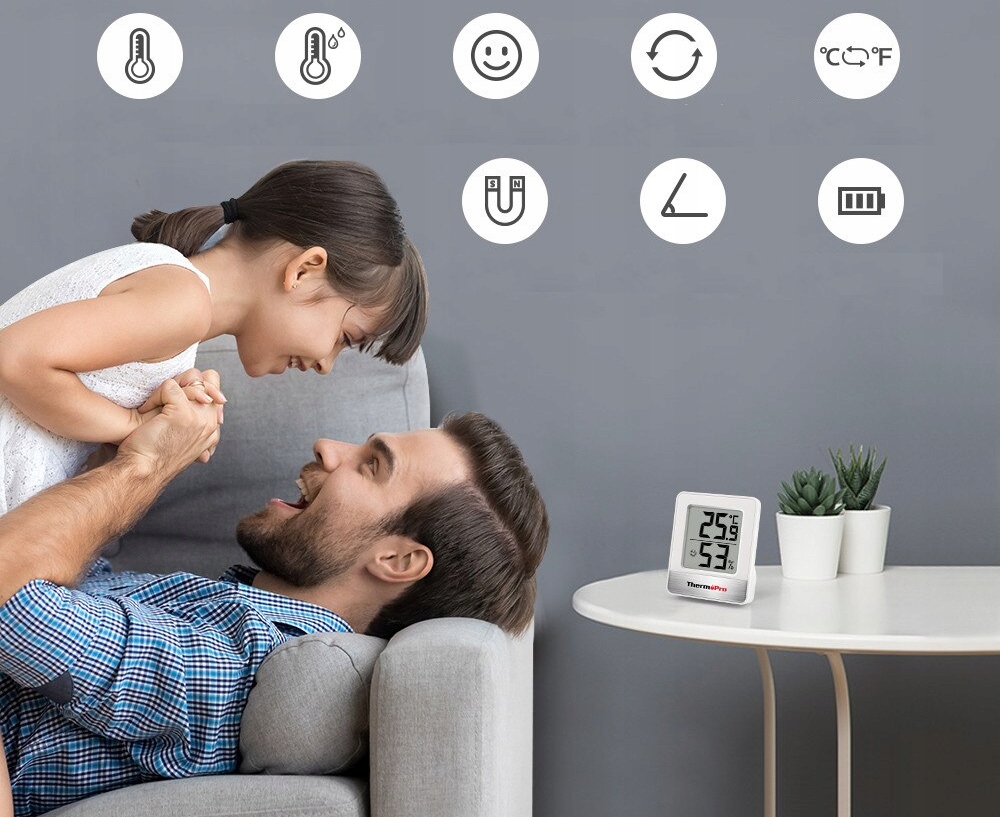 - Термометр обеспечивает точные показания влажности (±2~3% относительной влажности) и температуры (±1°C) в помещениях.