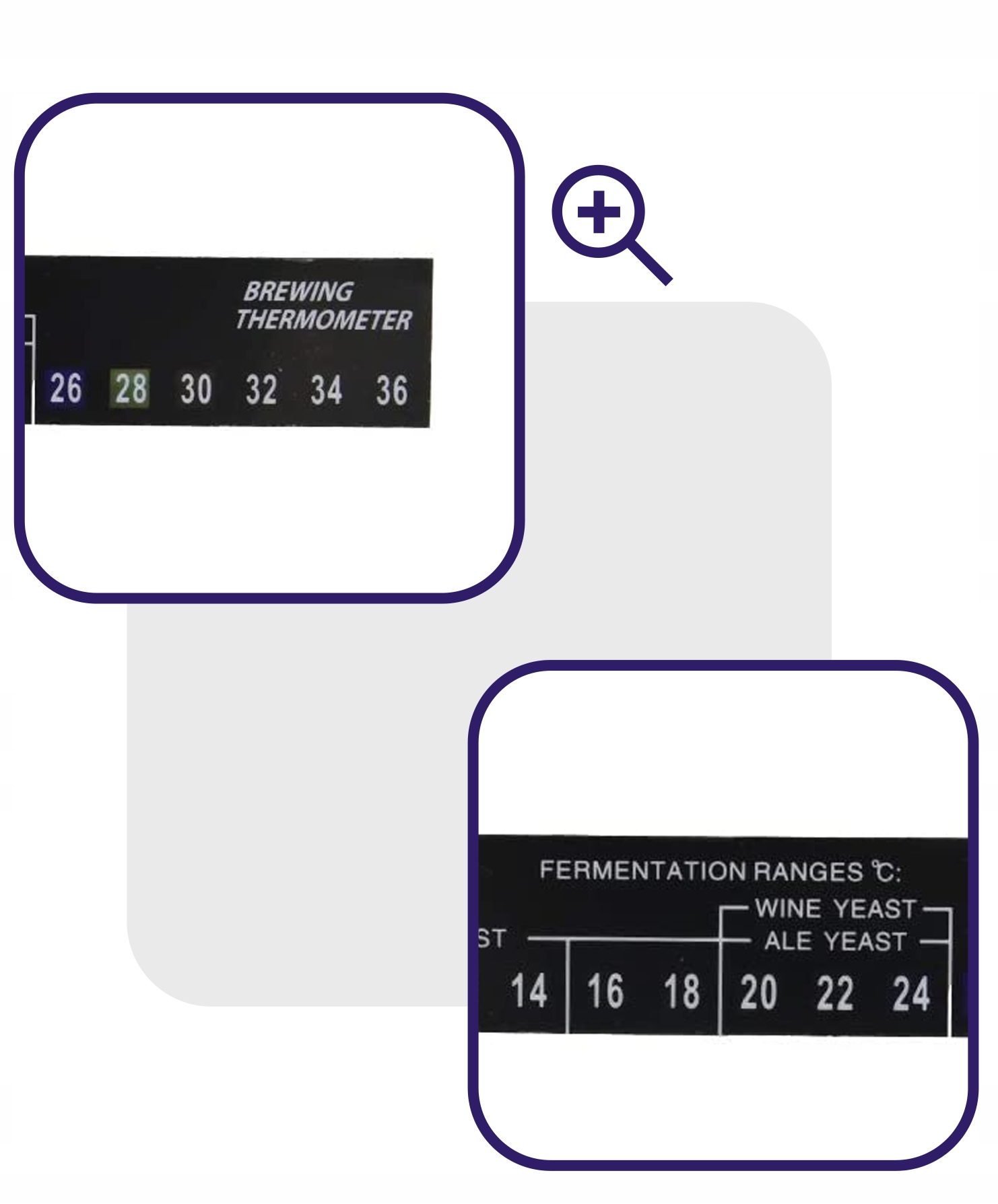✅ Температура ферментации обозначается раскраской одной из 18 прямоугольников, что означает температуру в диапазоне от 2 до 36 ° С. после прилипания вне ферментера, термометр устойчив к истиранию и просказыванию.
