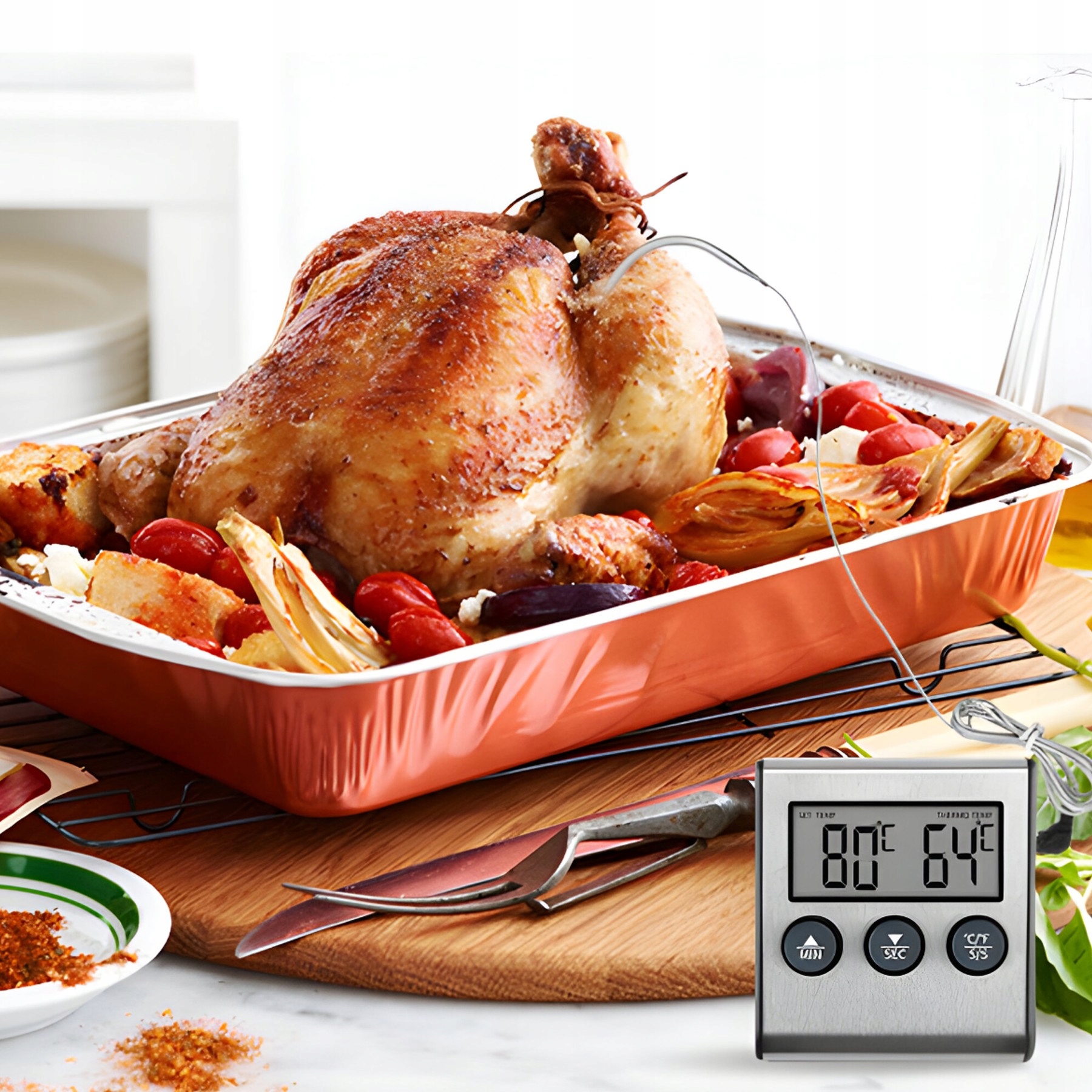 Термометр был разработан для удобства и точности . оснащен прозрачным ЖК -дисплеем, представляет результаты измерений прозрачным и прозрачным способом . Независимо от места подготовленных блюд, вы всегда можете прочитать точные параметры на экране .