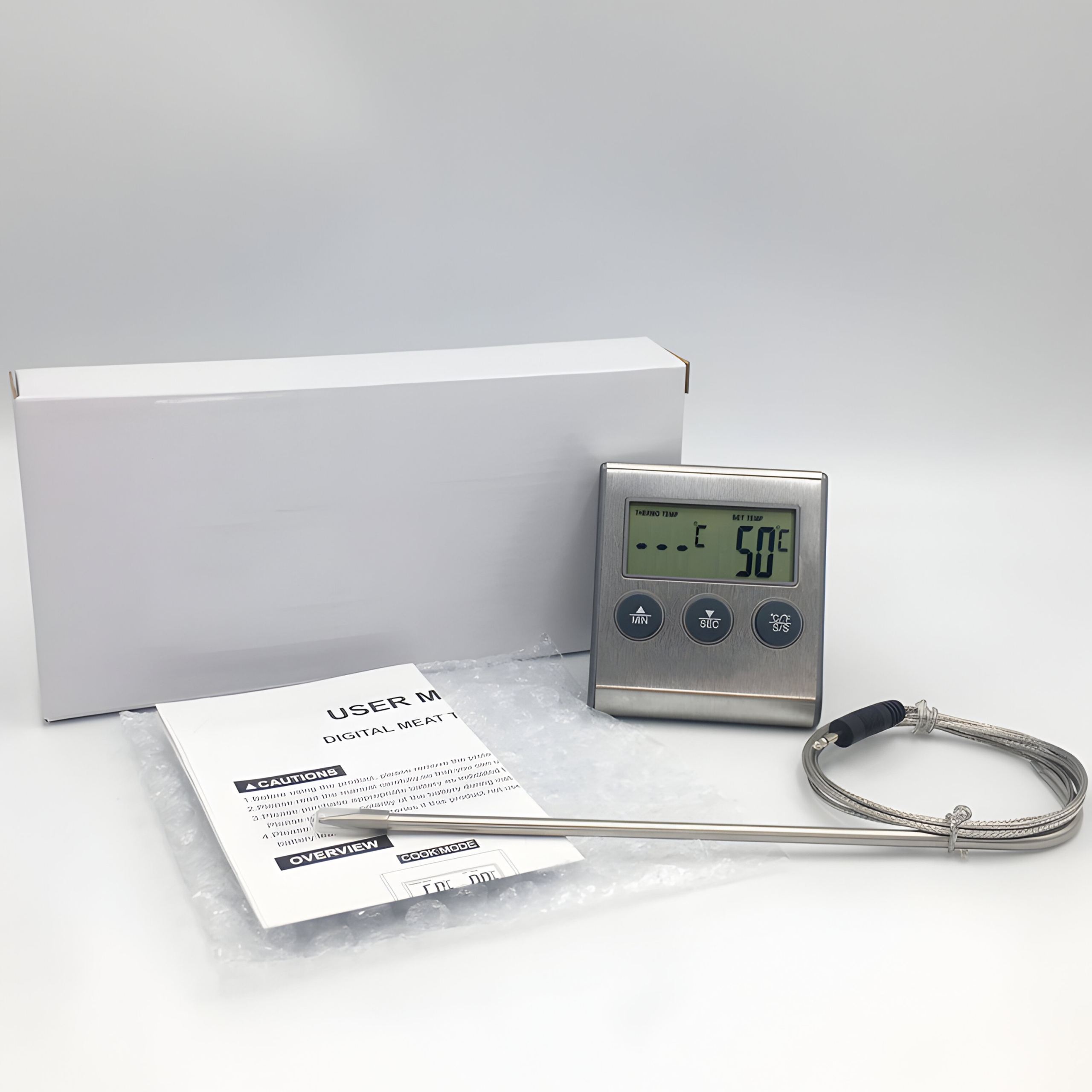 ✔ Безопасность использования - Устройство изготовлено из нержавеющей стали, поэтому поддержание его чистоты очень просто, кроме того, длинный зонд позволяет вам безопасно измерить температуру горячего блюда