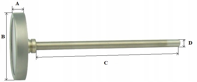 Дисковый термометр с зондом длиной 300 мм. Зонд из нержавеющей стали. Диапазон измерения от 0 до +500 градусов С. Термометр часто используется для измерения выхлопных газов в котлах, печах и т.п. Сдвижной разъем позволяет свободно регулировать длину зонда.