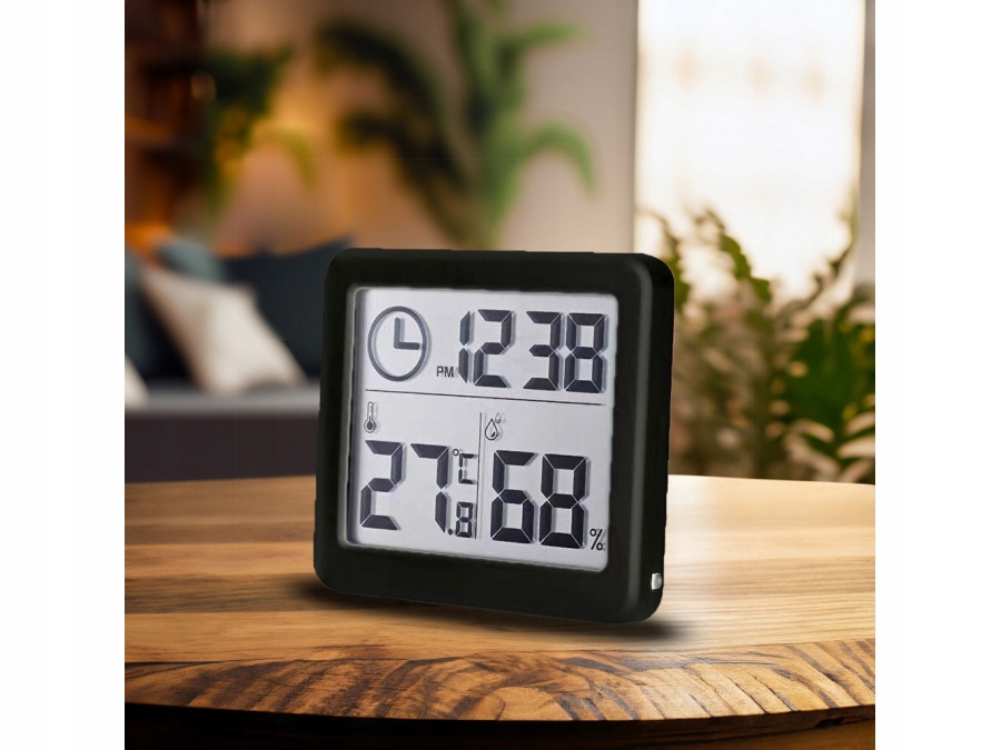 Termometr/higrometr z funkcją zegara GreenBlue czarny GB384B