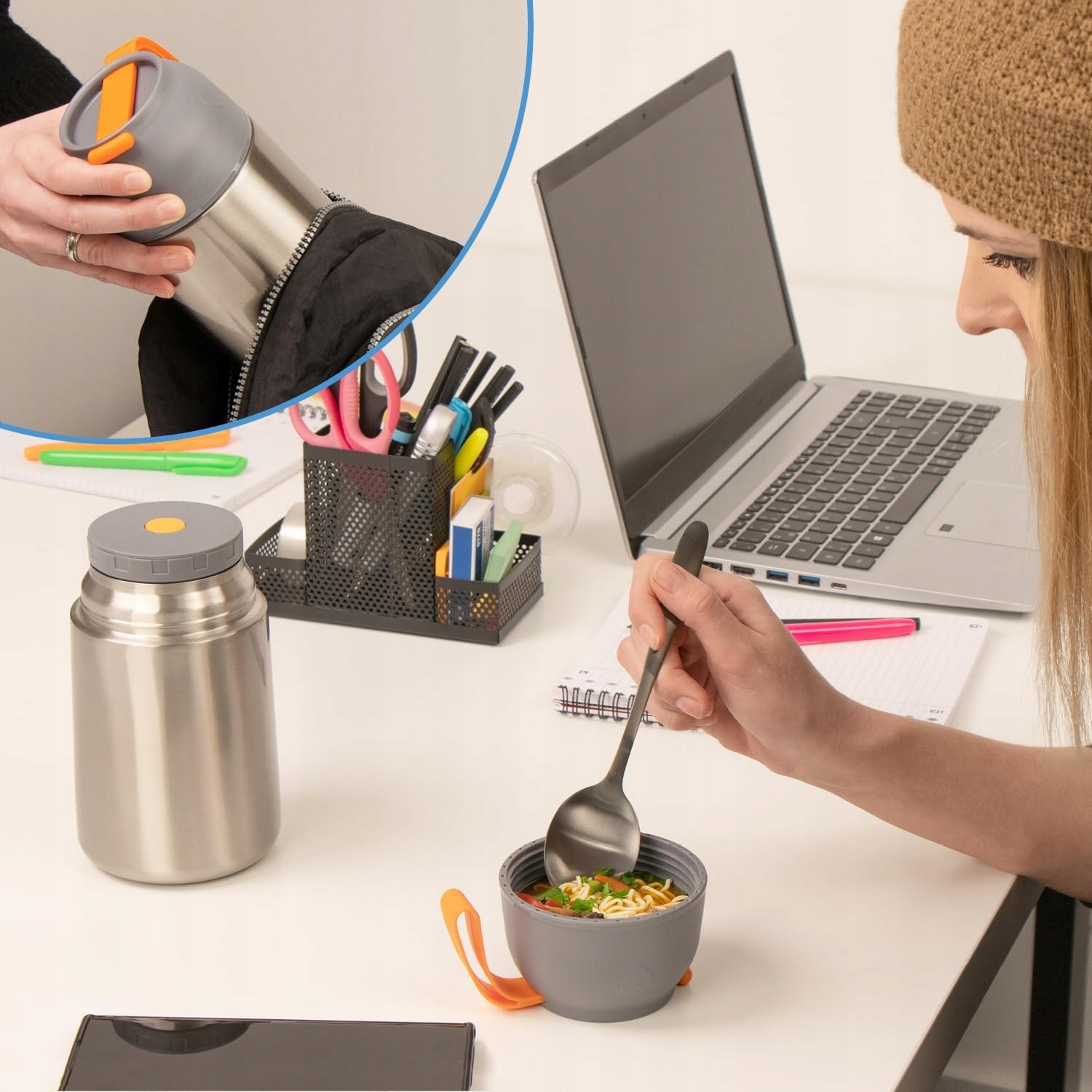 ✅Комплект поставки: 1 термоконтейнер, 1 ложка, 1 вилка. Размеры: ок. 19 х 10 см (высота х Ø) // Материал: нержавеющая сталь, пластик, силикон. Вместимость: ок. 650 мл // Цвет: серебро