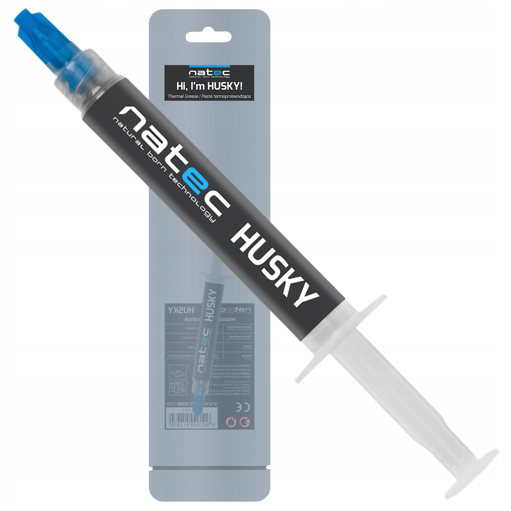 Natec Husky — теплопроводящая паста с высокими параметрами теплопроводности и низким термическим сопротивлением. Паста не проводит электричество, не подвержена коррозии и не подвержена коррозии. не требует периода отжига (оптимальная теплоотдача с первого цикла использования).