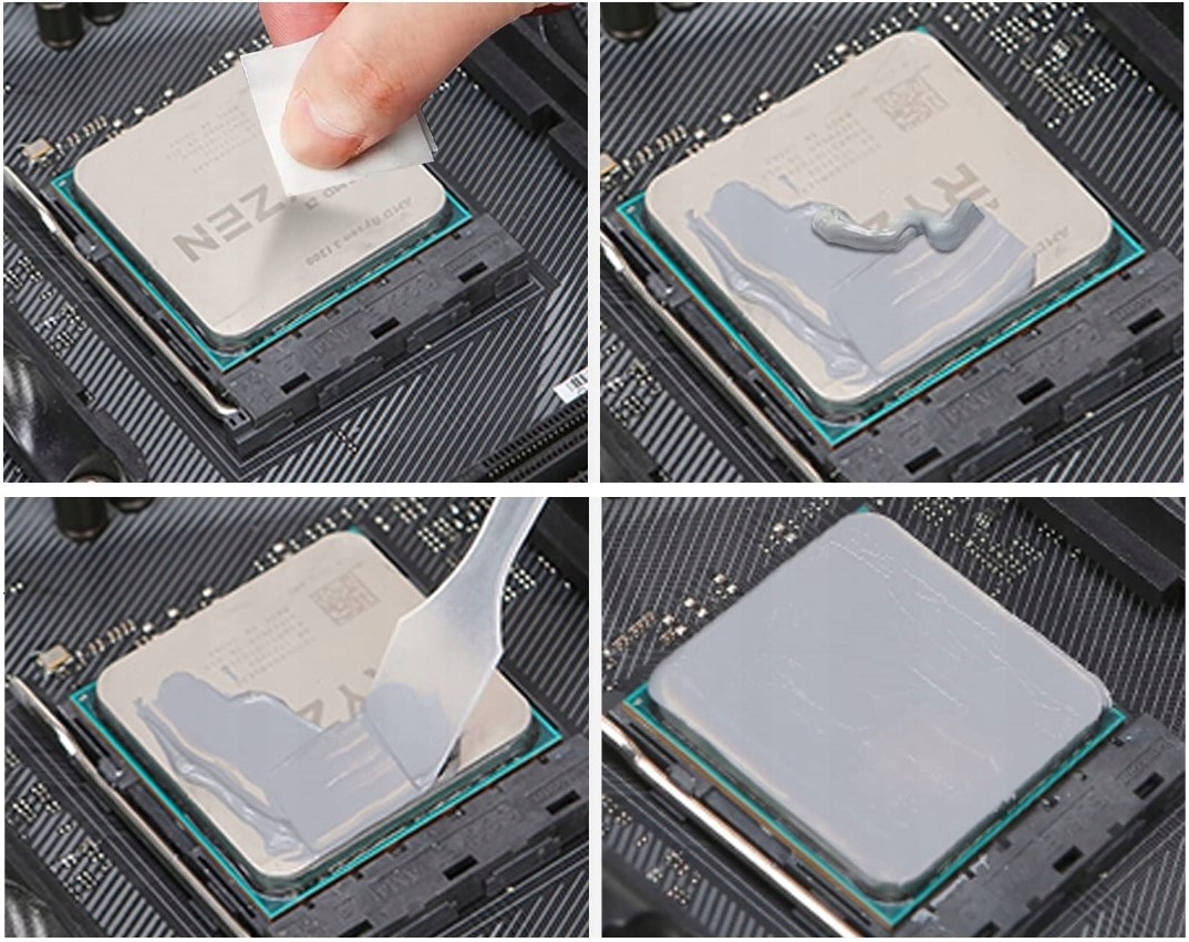 ✅Термопаста — пластичная масса, характеризующаяся сравнительно высокой теплопроводностью. Его обычно используют в электронике, в местах соприкосновения элементов, сильно нагревающихся, и элементов, рассеивающих тепло. Тонкий слой пасты, нанесенный на охлаждаемую систему (CPU, GPU, северный мост, ОЗУ), заполняет микронеровности поверхности в месте контакта с радиатором и увеличивает поверхность теплопроводности, генерируемую системой.