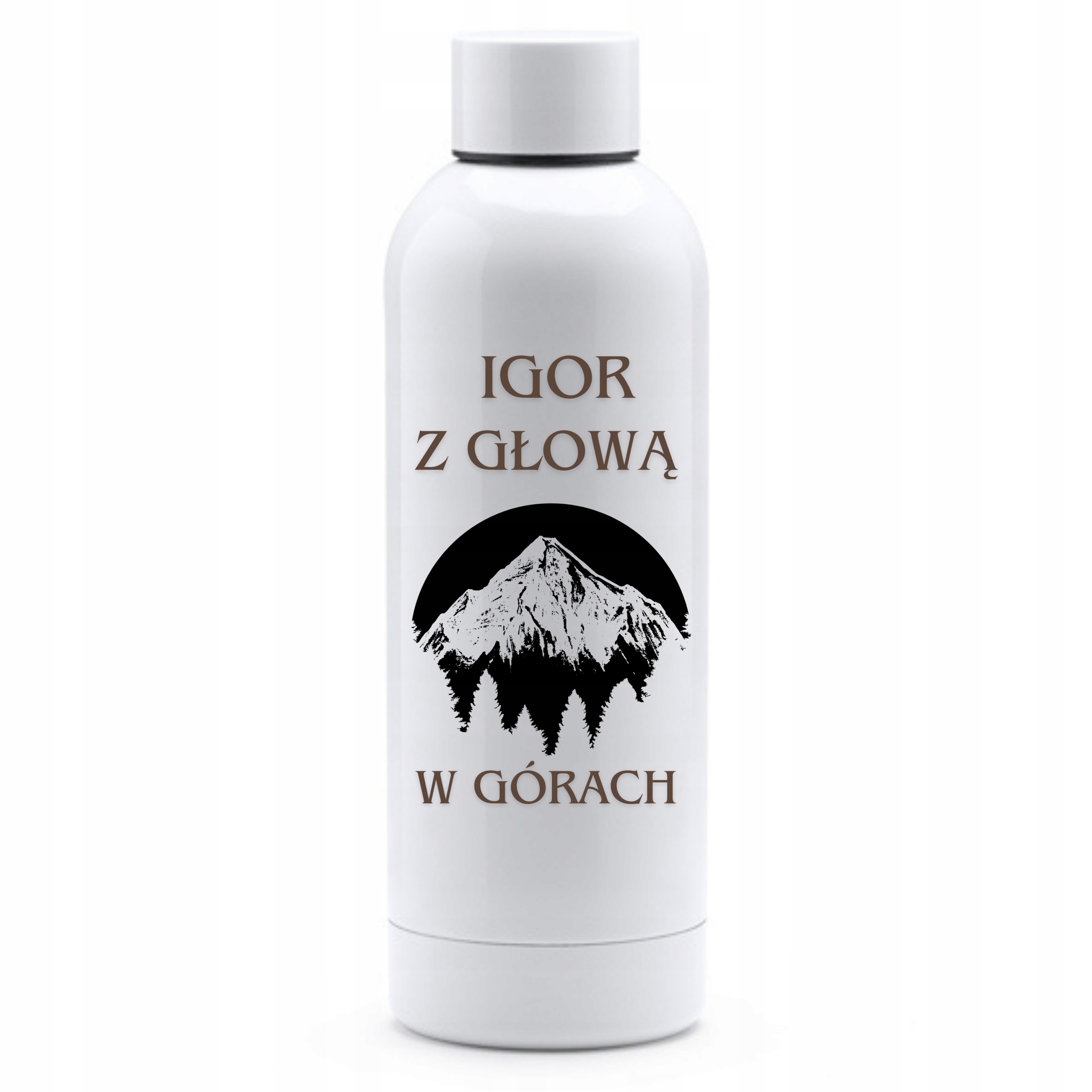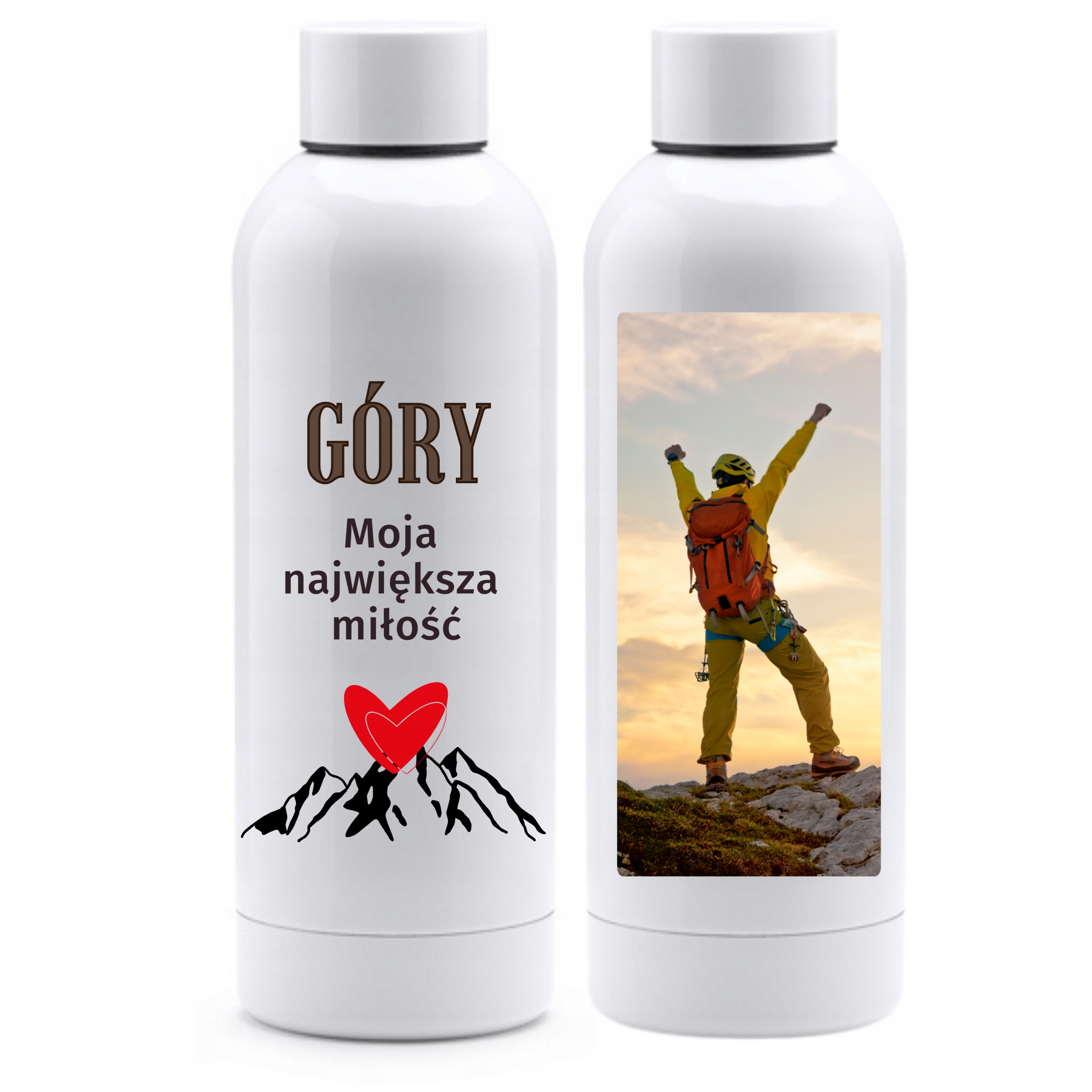 Термическая бутылка 500 мл для теплого напитка, вода, белая с собственным принтом