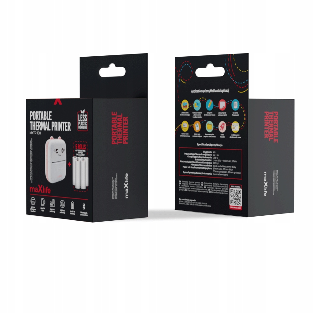 Благодаря своему компактному размеру этот принтер станет вашим спутником во время школы, праздников, вечеринок или встреч с друзьями. Это очень полезное устройство, которое не только поместится в рюкзак или сумку, но и будет способствовать созданию незабываемых воспоминаний, а благодаря пяти рулонам термобумаги вы забудете о необходимости замены чернил.