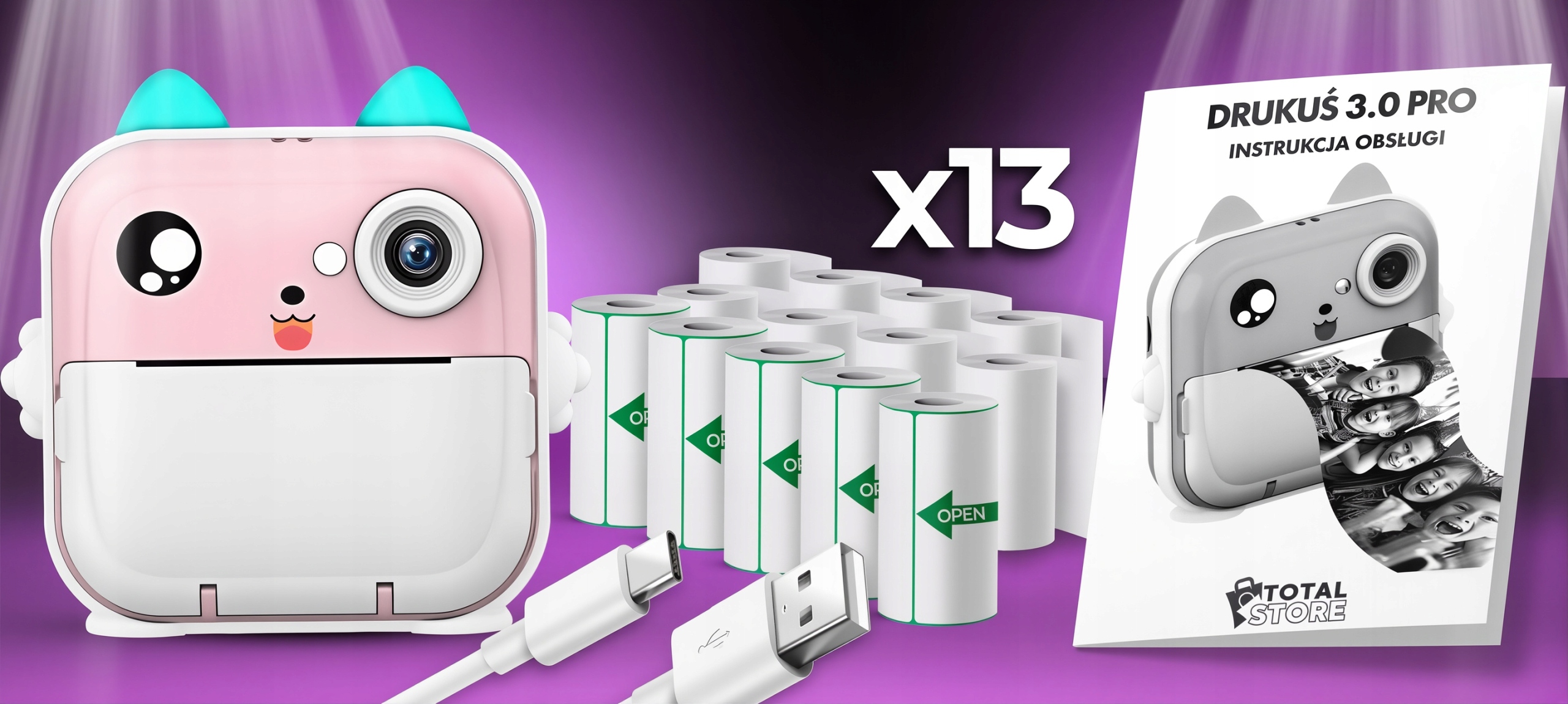 DRUKUŚ 3.0 PRO ТЕРМОПРИНТЕР ДЛЯ ФОТОГРАФИЙ КАМЕРА + 13 РОЛИКОВ