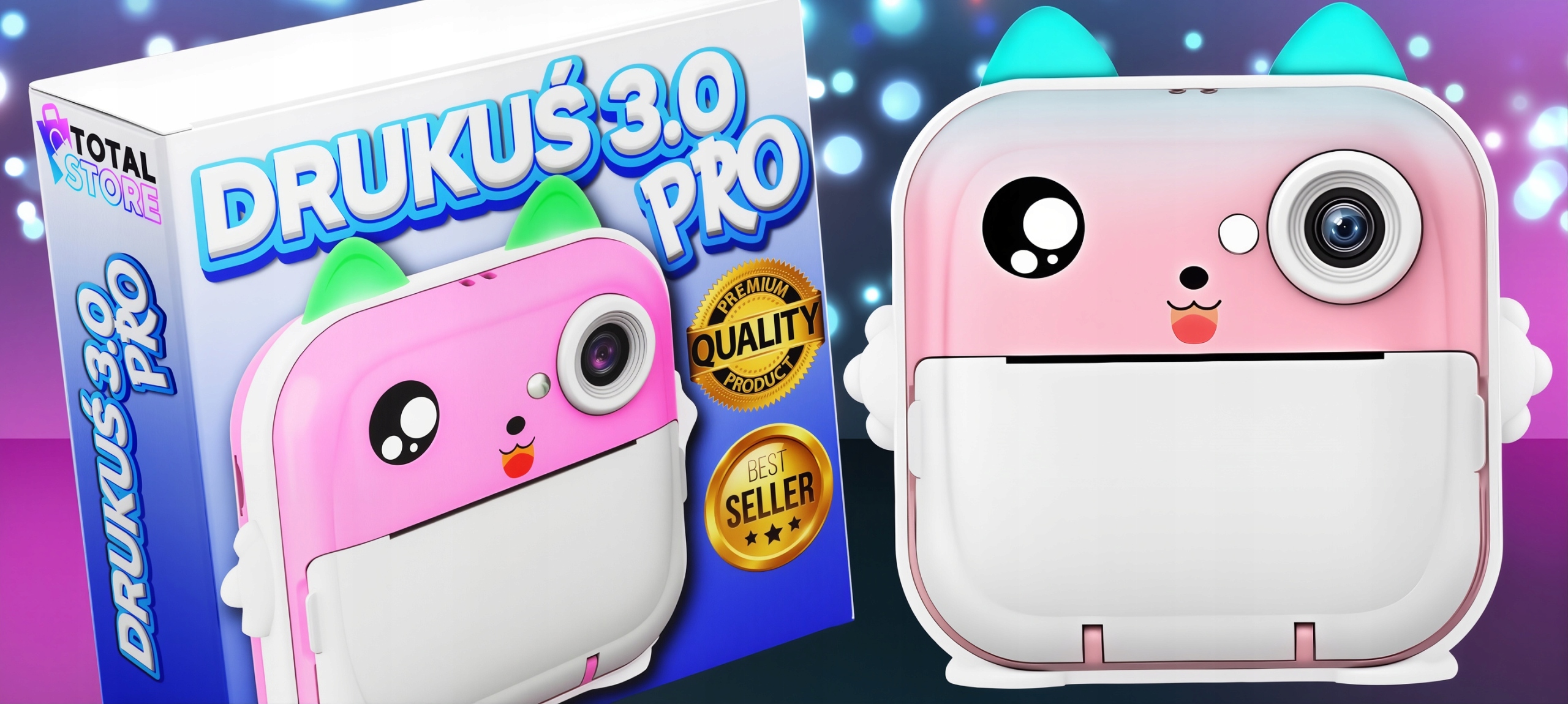 DRUKUŚ 3.0 PRO — революционное портативное устройство, сочетающее в себе функции нескольких устройств. Он позволяет выполнять термопечать, фотографировать, записывать видео и обучать детей благодаря встроенным играм. Это идеальный инструмент, который можно использовать как дома, так и в поездке. Компактный размер, простота управления и широкие творческие возможности делают DRUKUŚ 3.0 PRO идеальным подарком для каждого!