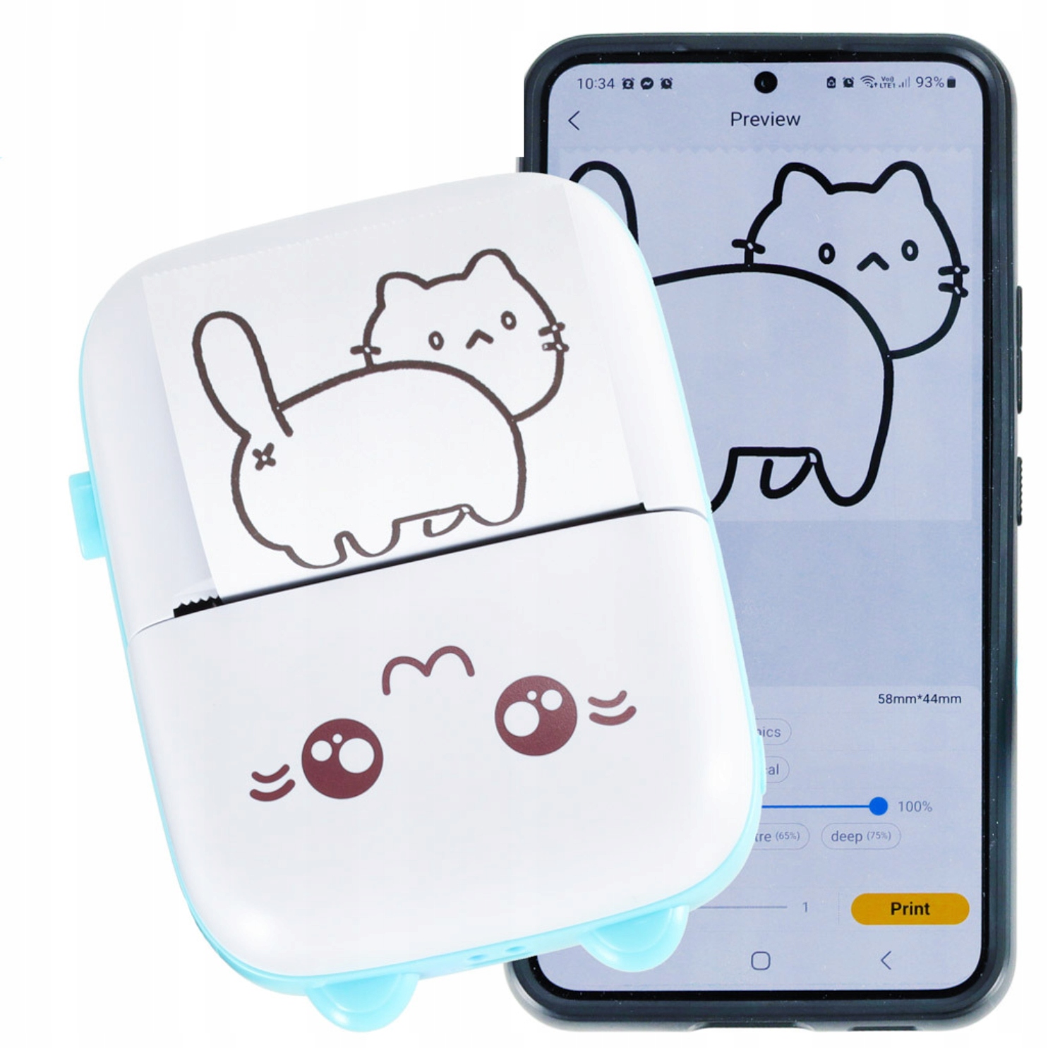 ТЕРМОПРІНТЕР DRUKUŚ MINI CAT ПОРТАТИВНИЙ ДЛЯ ФОТОГРАФІЙ ЕТИКЕТОК + 15 РОЛИКІВ
