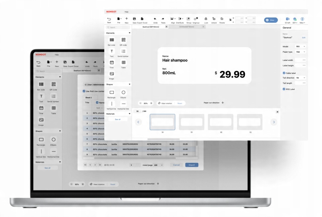 Принтер печатает несколько этикеток в секунду, это термопринтер, поэтому чернила у вас никогда не закончатся. Высокая эффективность работы благодаря встроенному аккумулятору 2200 мАч, который позволяет печатать наклейки без проводов в любой точке мира. Просто установите приложение, подключитесь к принтеру по Bluetooth и всё!