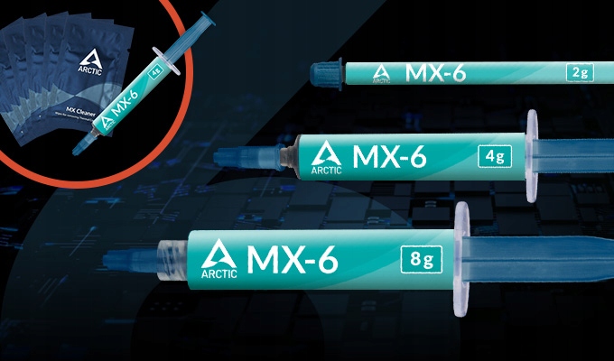 ARCTIC MX-6 доступен в упаковках разного веса. Многоразовые шприцы предотвращают высыхание пасты и облегчают дозирование. Альтернативно доступны варианты с MX Cleaner. Они обеспечивают простую и безопасную очистку контактных поверхностей. Очиститель на 100 % состоит из лимонена — натурального вещества, полученного из цитрусового масла, которое полностью биоразлагаемо.